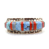 In the ten years it took him to complete his degree, he worked as a survey helper and would walk from Second Mesa to Black Mesa everyday. This gave him a greater appreciation and connection to his heritage and inspired him to complete his education. While at University, he did research into African and Indian art. His jewelry reflects this research, with his use of hollow silver tubes, lapis, red coral, shell mosaics, and turquoise.