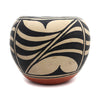 Santana Melchor, one of the apex potters from the Kewa Pueblo-Santo Domingo, made exceptional large storage jars in the early to mid 20th century. Throughout her career, she used large traditional designs, birds, flowers, circles, and geometrics. Most of the time her post had a spirit break in the band around the rim, and she is credited with preserving this particular traditional design.