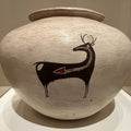 This abstract horse is an early example of Navajo pictorial weaving. The cubist flavor of the geometric animal imparts a modern feel. This is one of the earliest Navajo pictorials woven in a sampler size that could be sold to railroad travelers; woven in Churro blanket wool. Circa 1890.