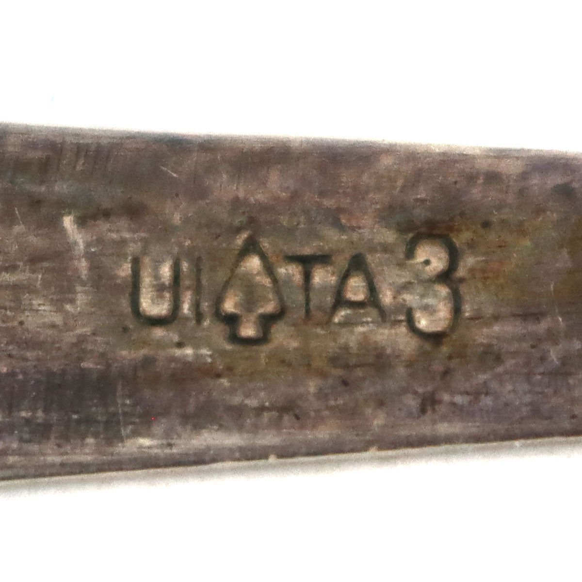 Toadlena Trading Post - Navajo - Silver Spoon Pin with Stamped Design c. 1910-20s, 0.625" x 2.625"
