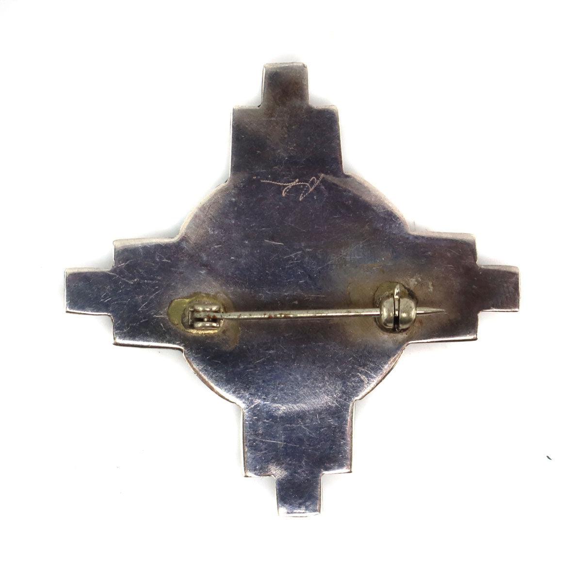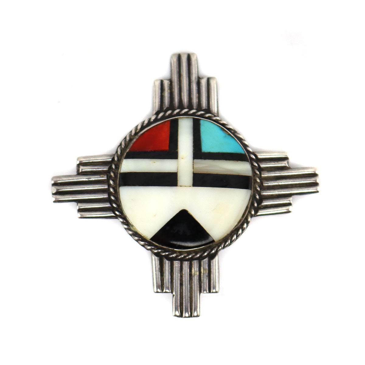 Zuni - Multi-Stone Inlay and Silver Sunface Kachina Face Pin c. 1940-50s, 1.875" x 1.875"