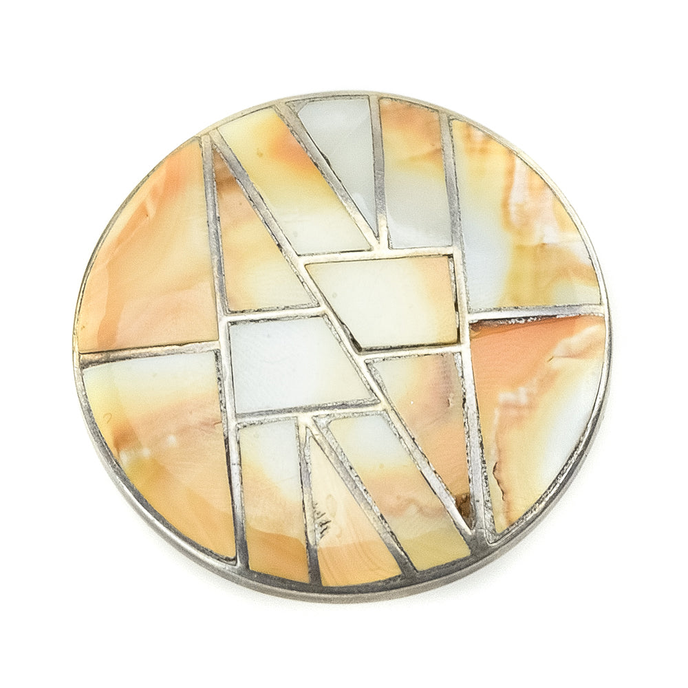 Zuni Melon Shell Channel Inlay and Silver Pendant/Pin c. 1950s, 2" diameter (J7825)