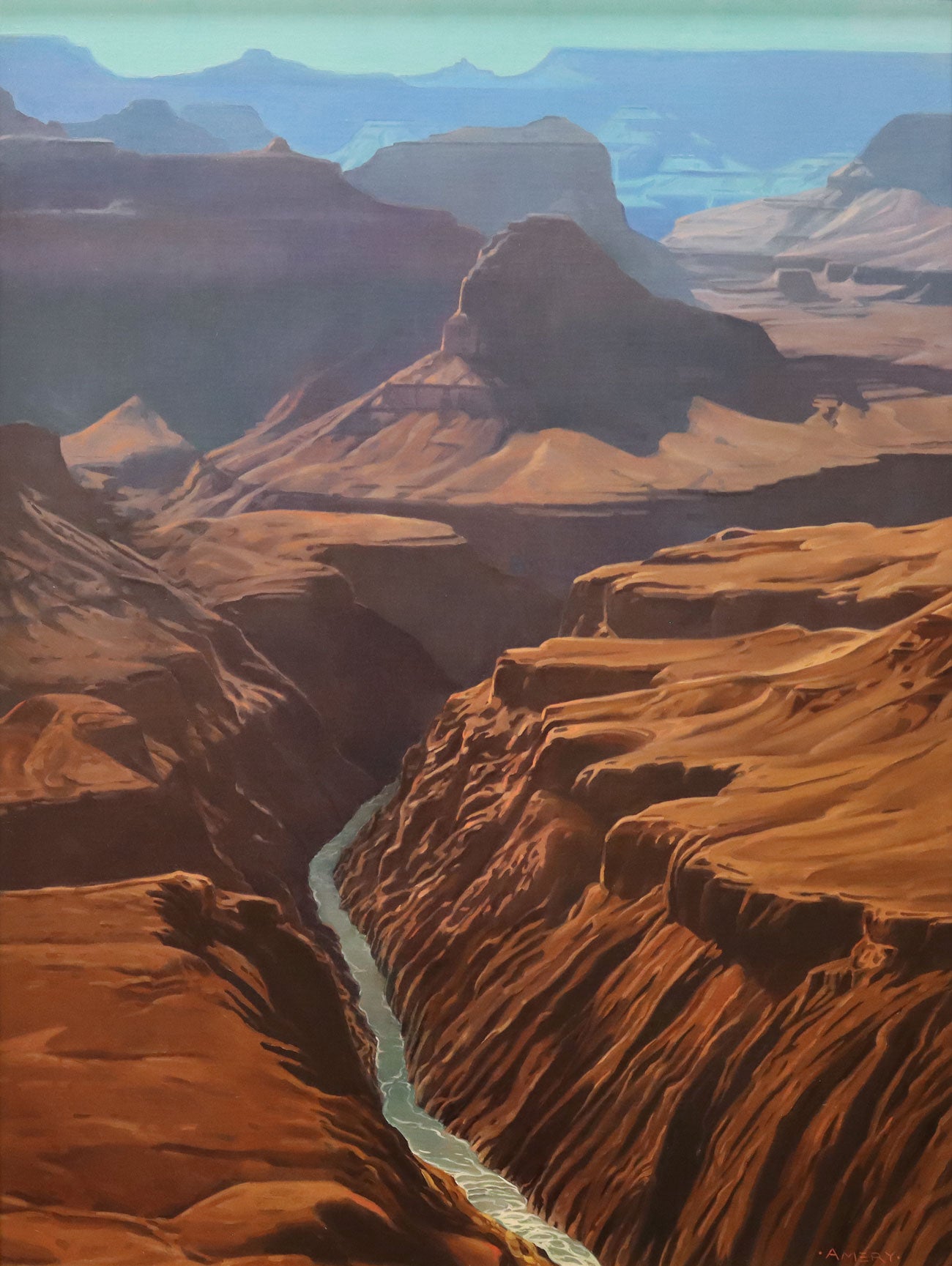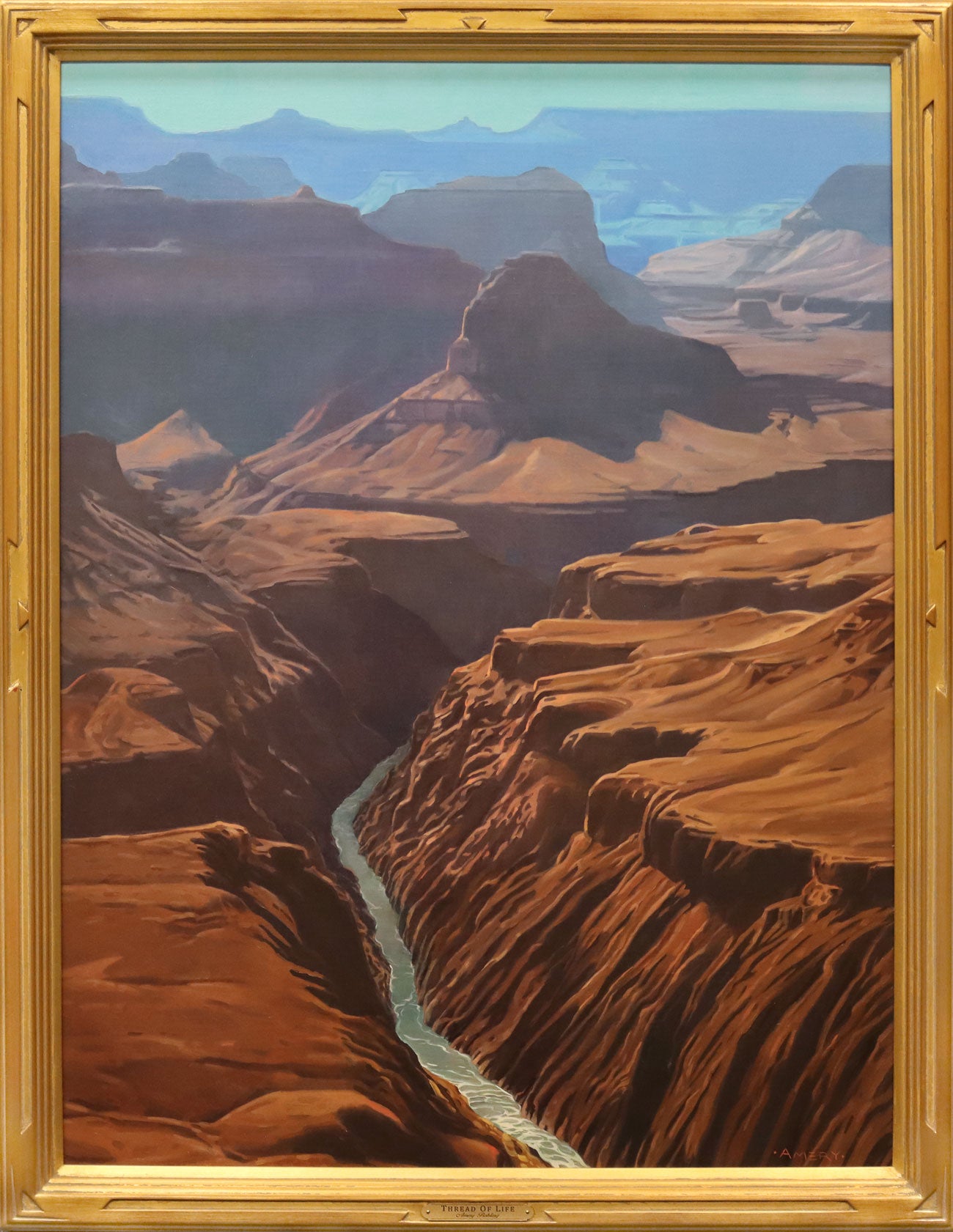 44" x 34" framed. Signed by the artist in the lower right corner.