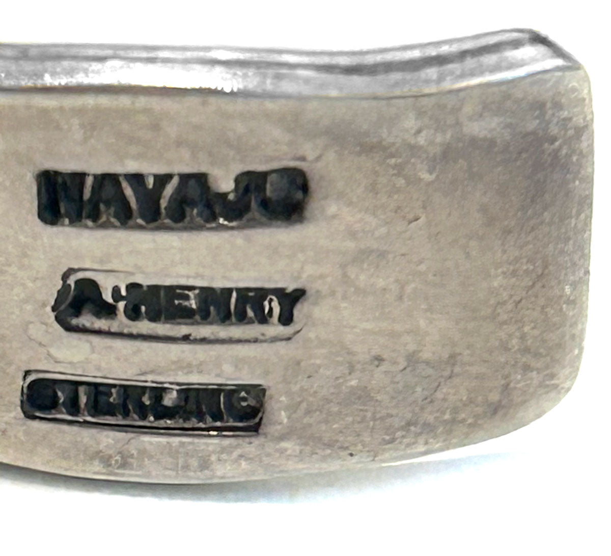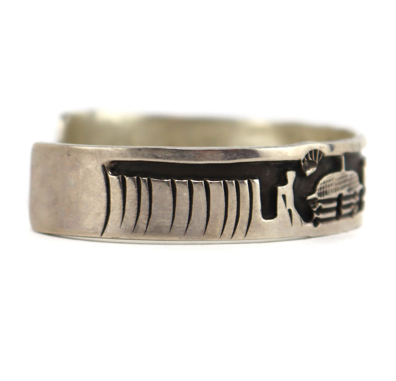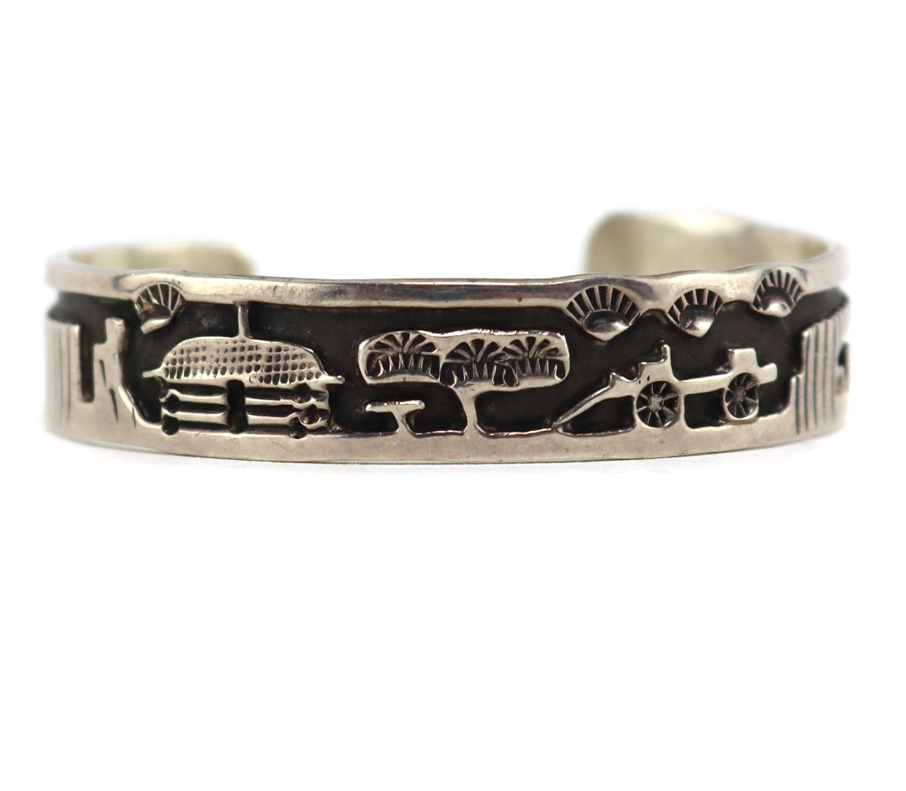 Andrew Henry - Navajo - Sterling Silver Overlay Storyteller Bracelet c. 1980-90s, size 6.5