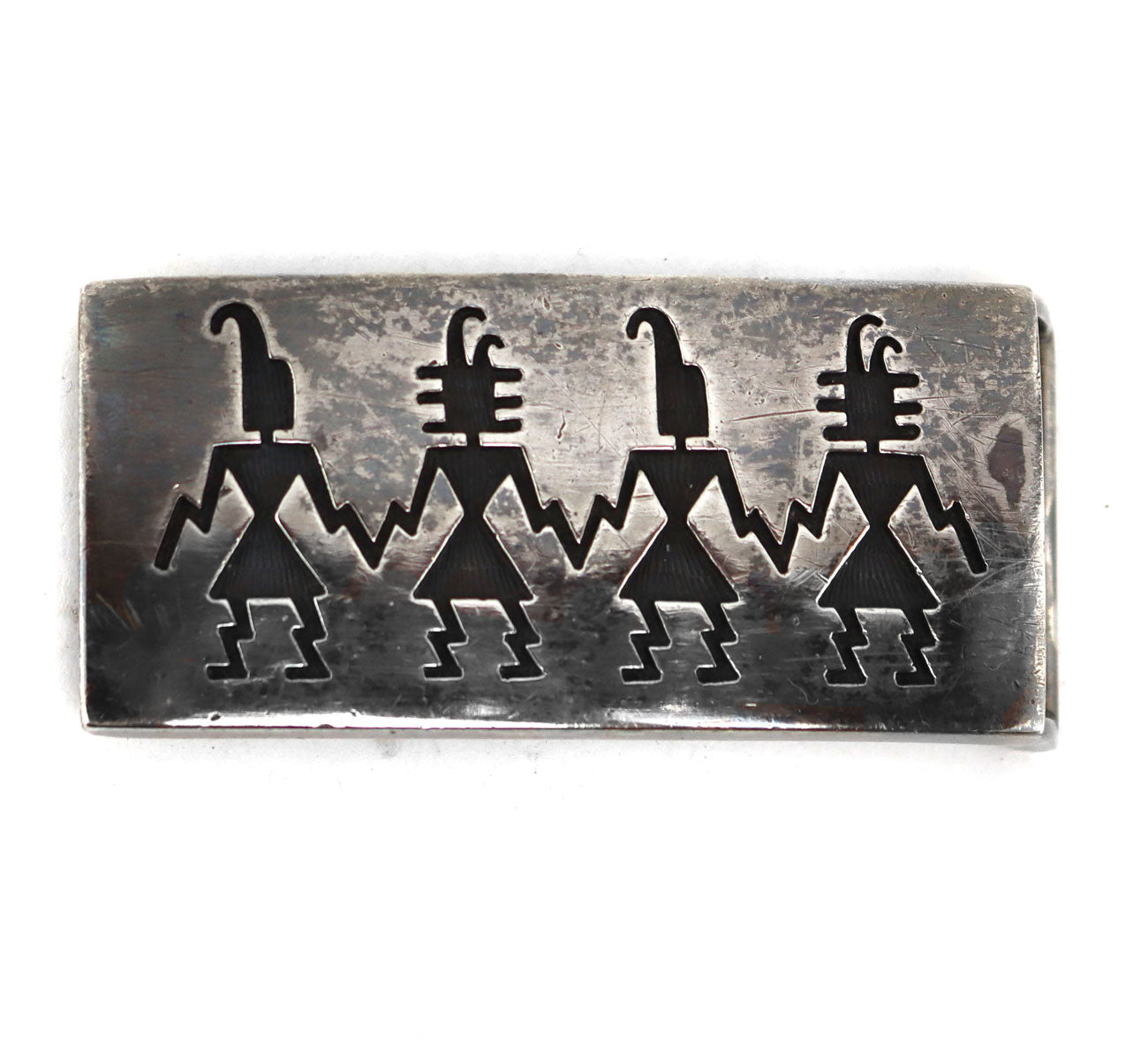 Hopi Crafts - Silver Overlay Belt Buckle c. 1970s, 1.25" x 2.5"