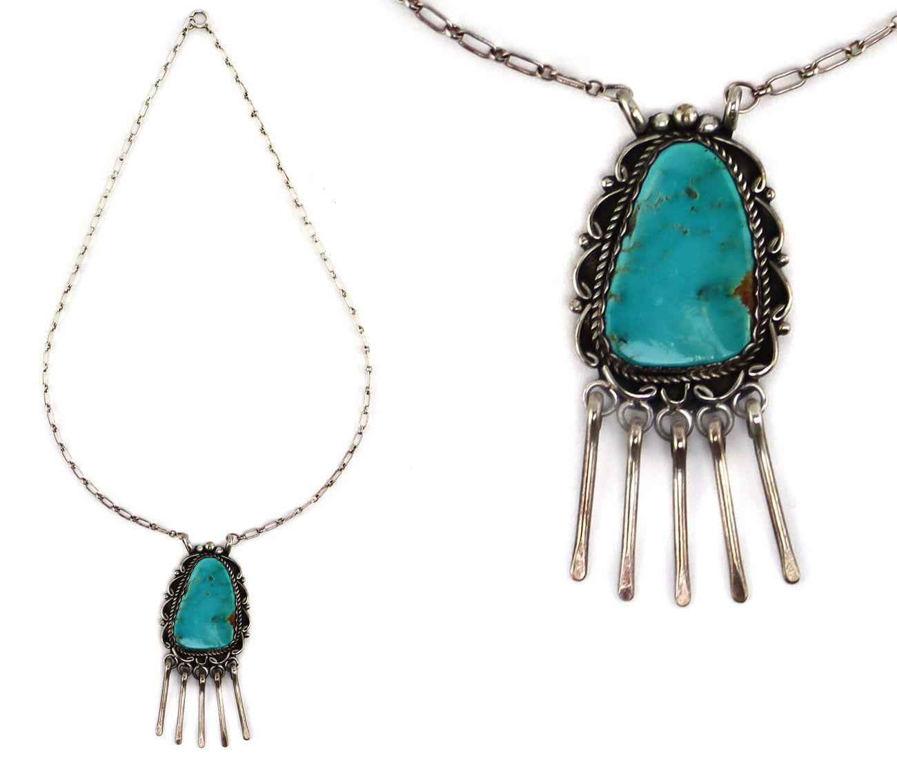 Navajo - Turquoise and Silver Necklace with Dangle Design c. 1970-80s, 17" length