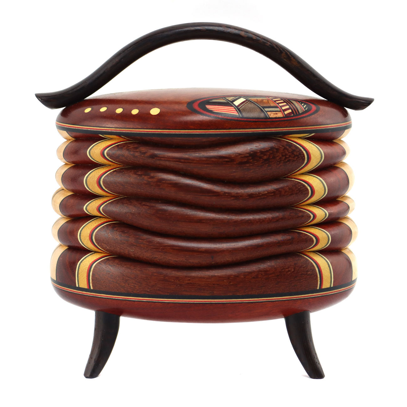 Terry Evans - Bloodwood Lidded Box with Handle, Legs, and Inlay, 6.7" x 6.5" x 4"