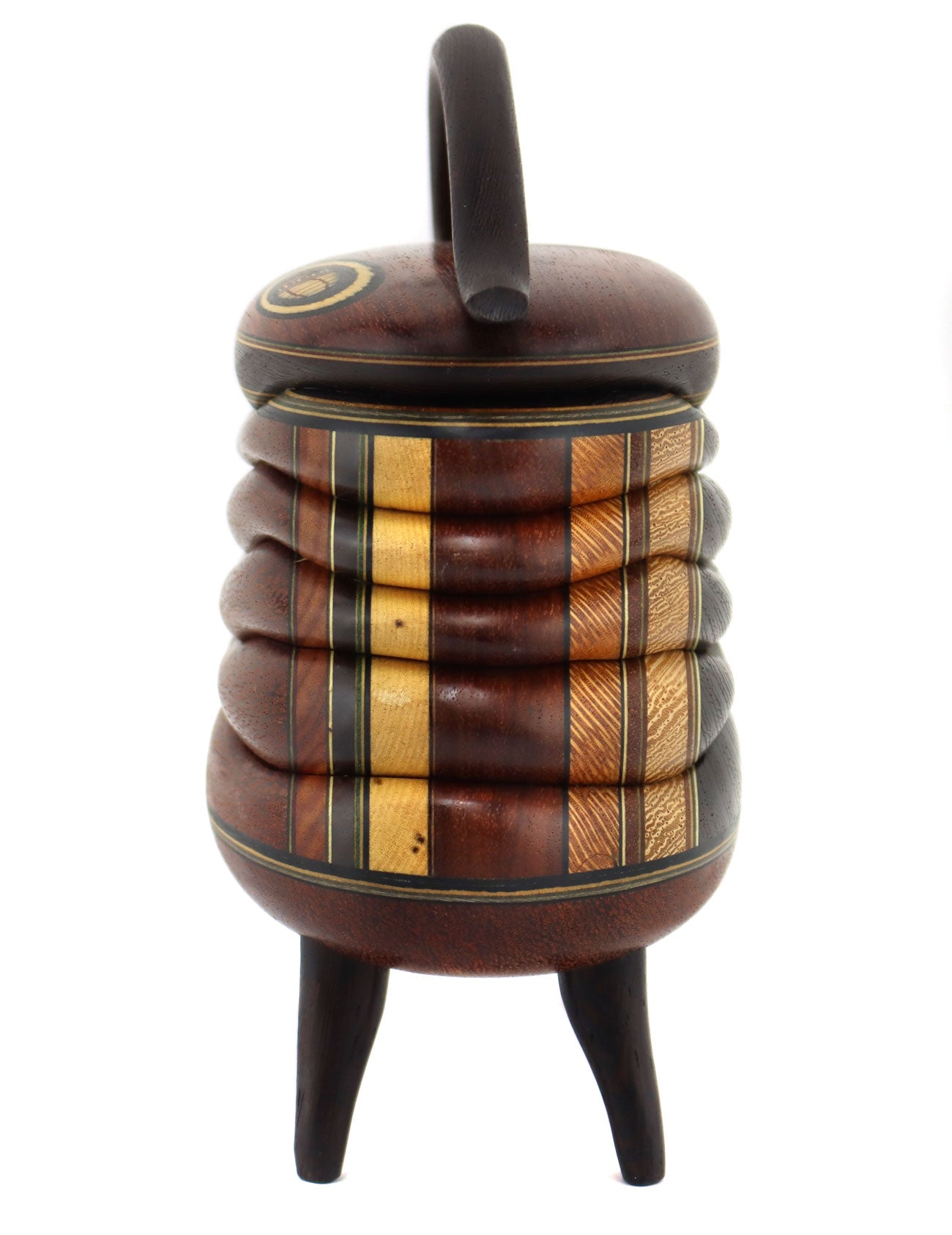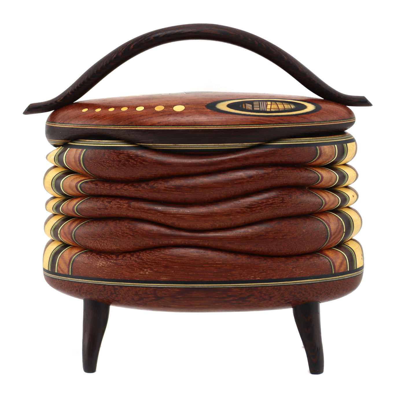 Terry Evans - Bubinga with Handle, Inlay, and Legs Wood Lidded Box, 8" x 8" x 4"