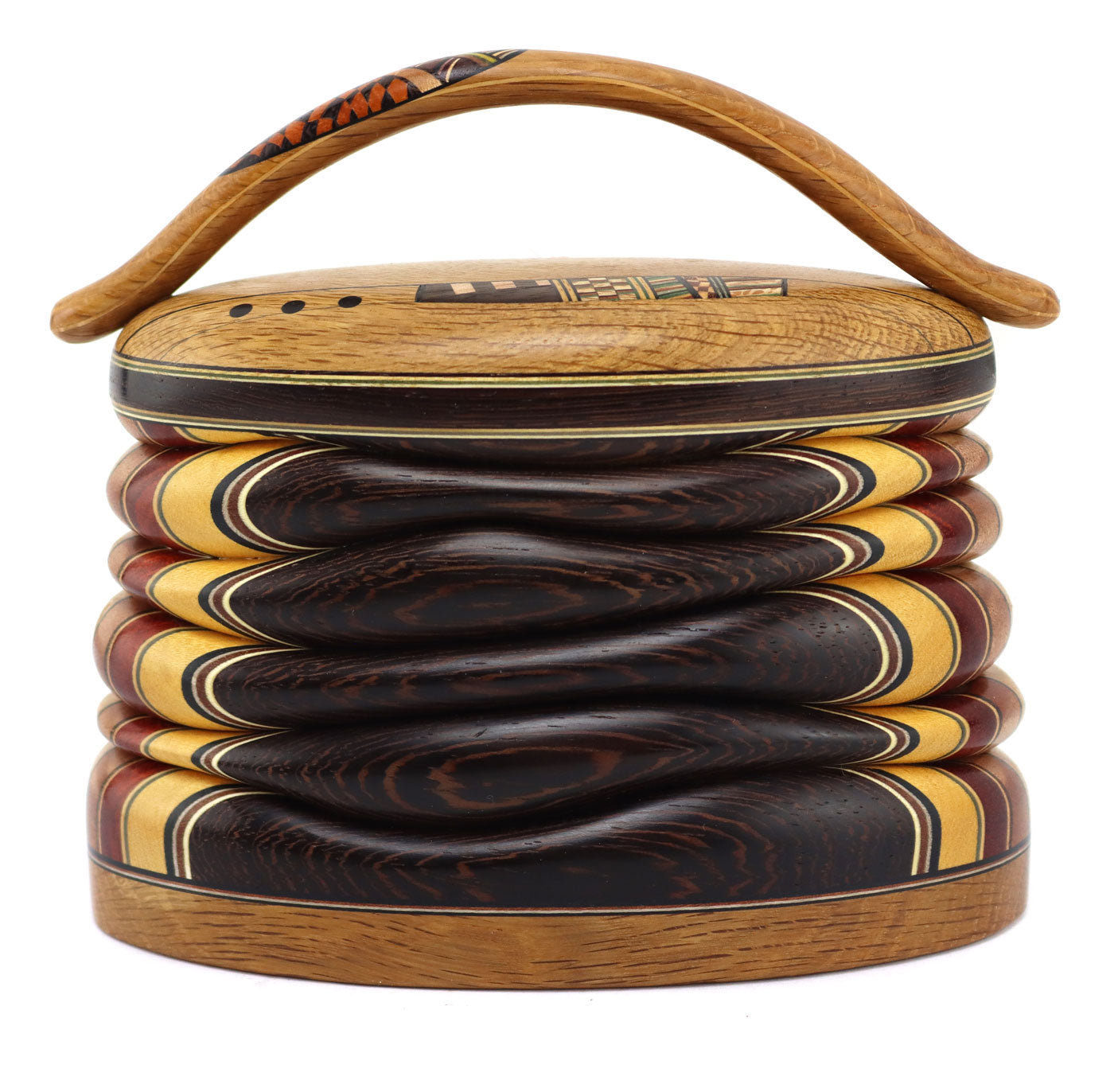 Terry Evans - Oak with Handle & Inlay Wood Lidded Box, 5.9" x 6.6" x 3.3"