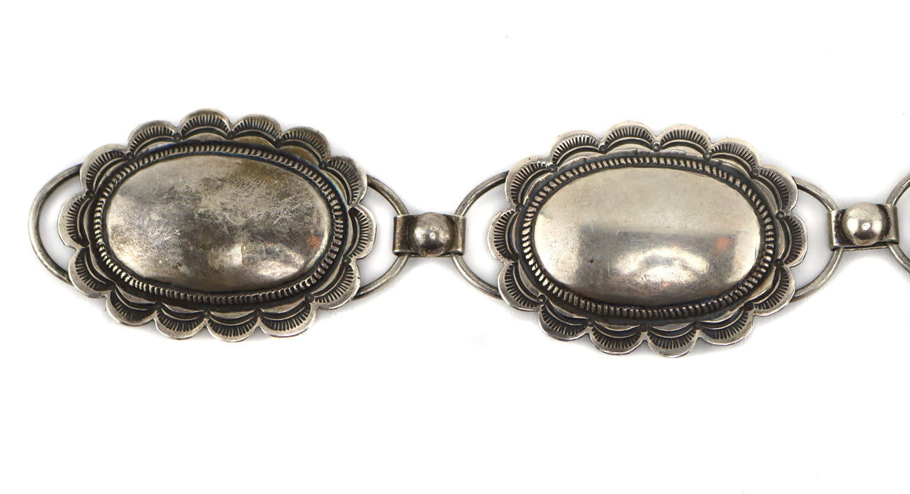 Thunderbird Shop - Sterling Silver Link Concho Link Hat Band c. 1940s, 25" length