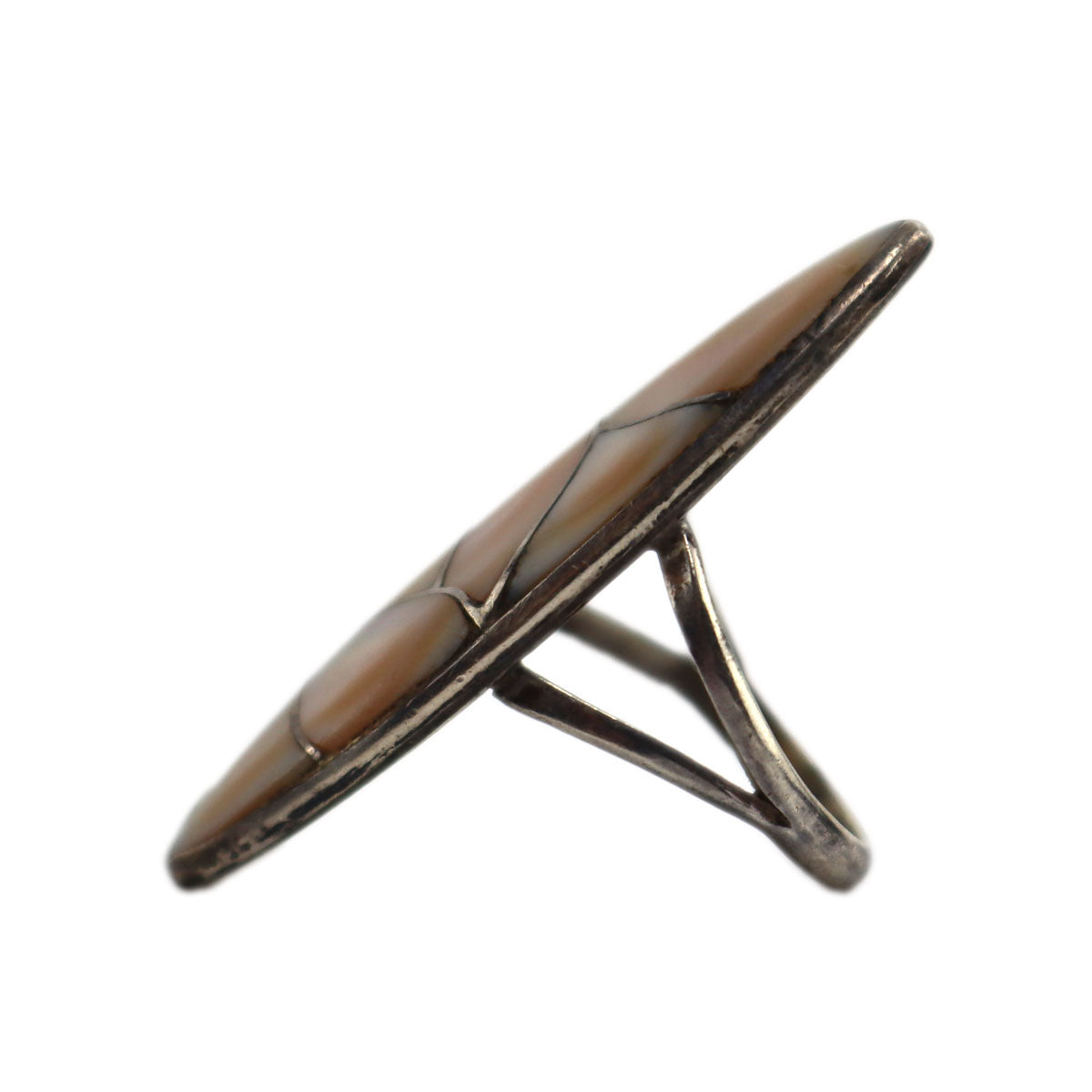 Zuni - Mother of Pearl Channel Inlay and Silver Ring c. 1950s, size 6.25