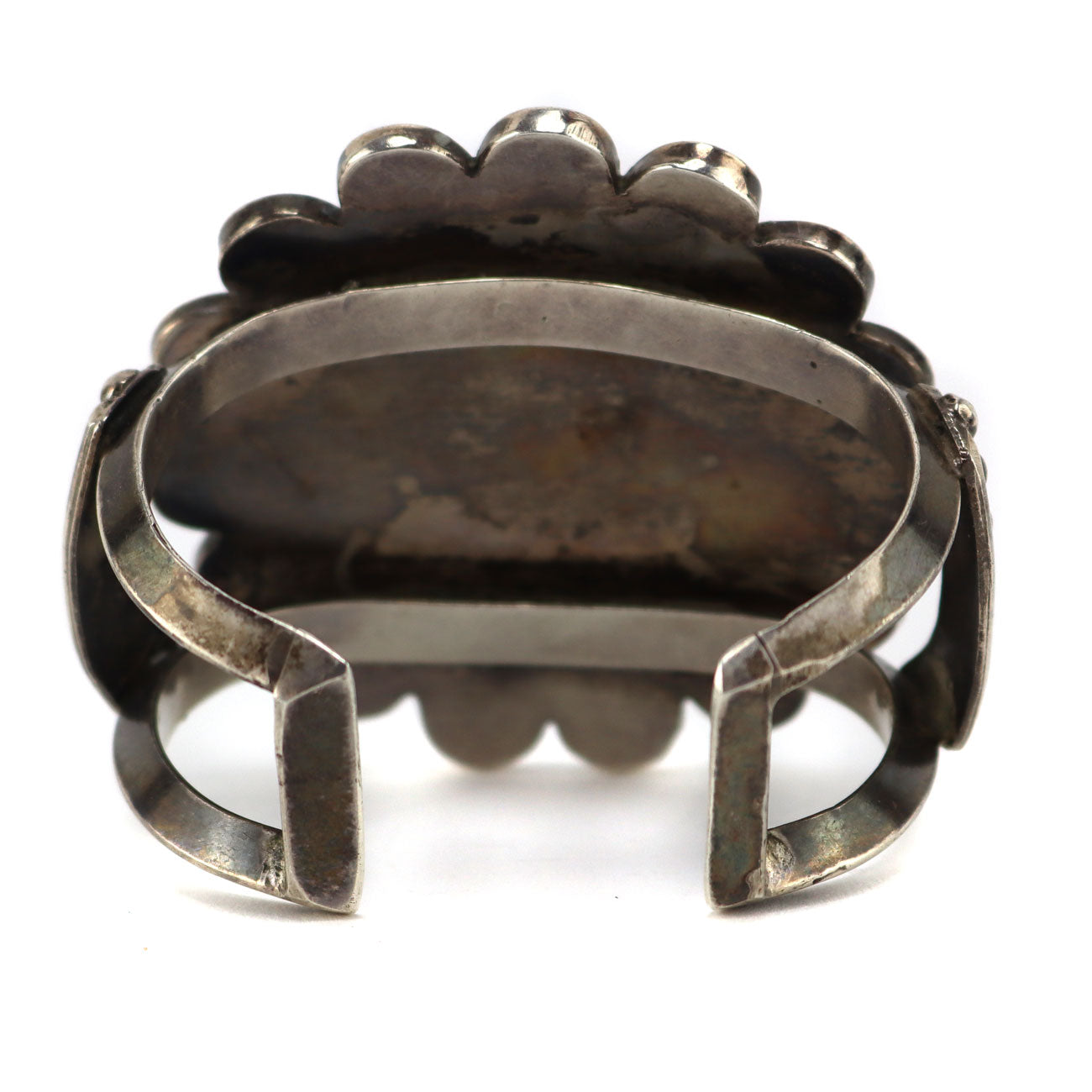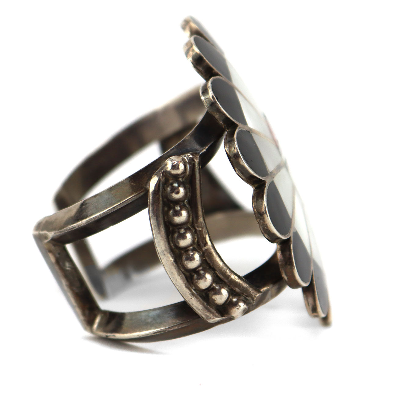 Zuni - Multi-Stone Channel Inlay and Silver Bracelet with Sunface Kachina Design c. 1950s, size 7