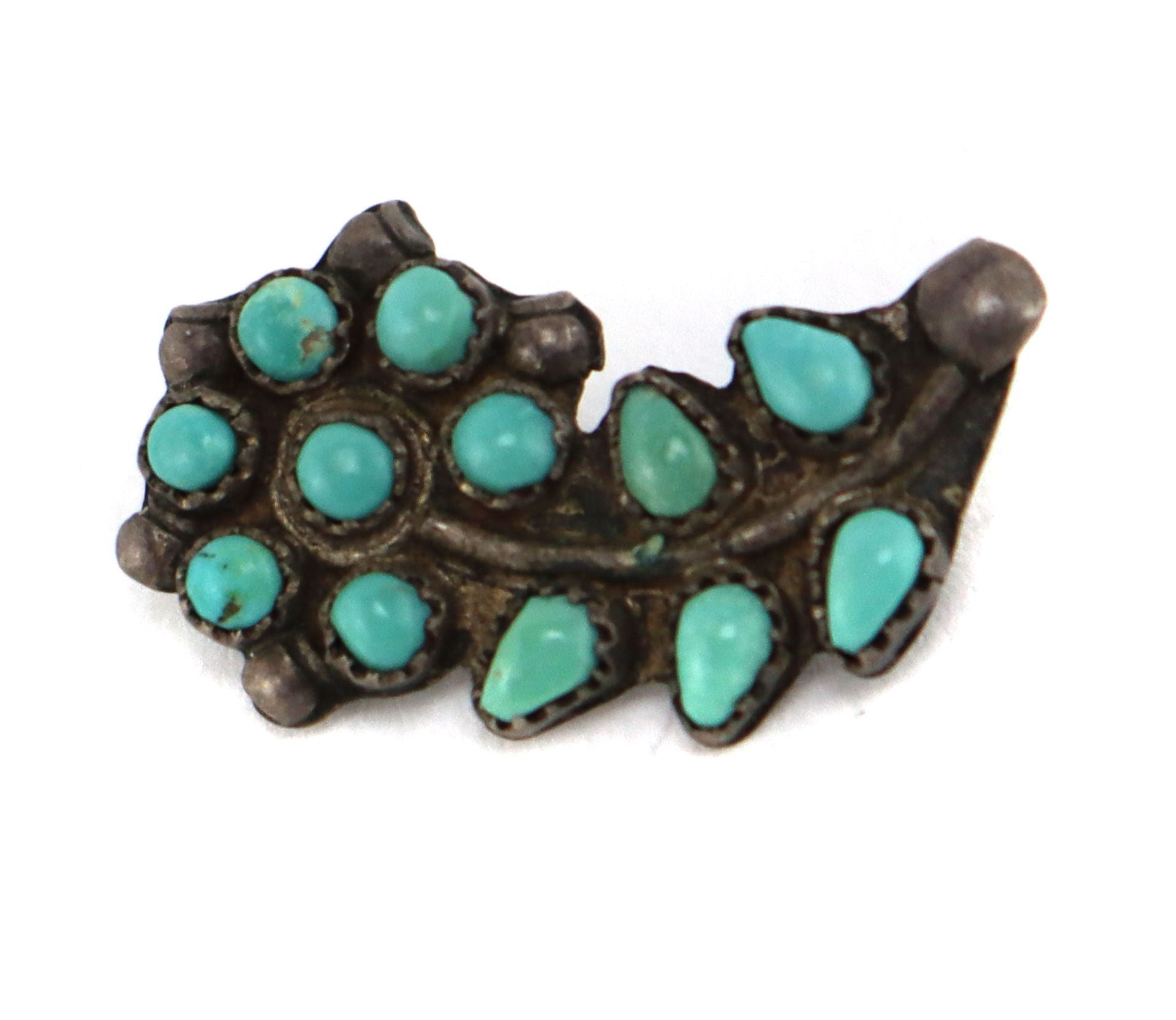 Zuni - Turquoise Petit Point Cluster and Silver Pin with Flower Design c. 1930-40s, 0.875" x 0.5"