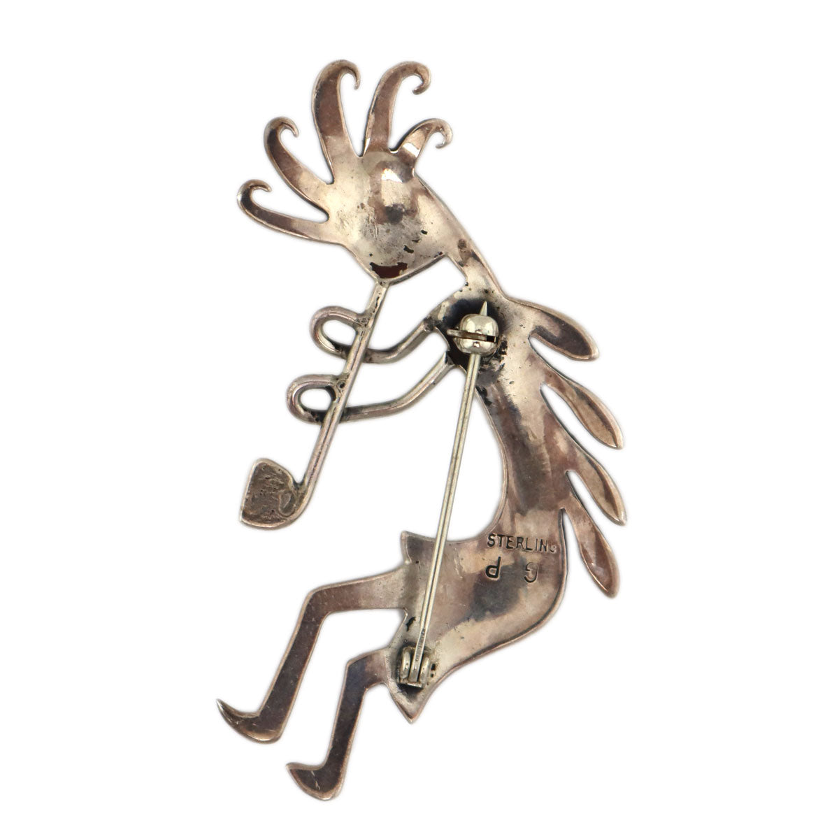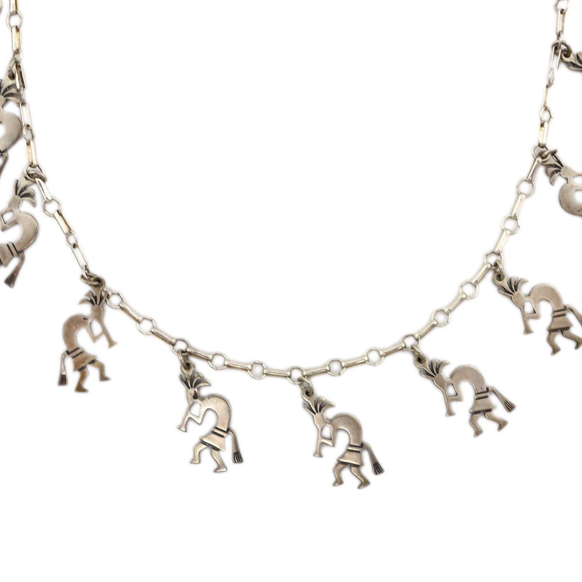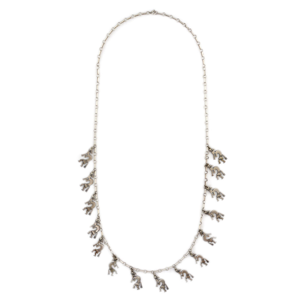 Glenn & Irene Sandoval - Navajo - Silver Necklace, French Hook Earrings and Silver Pin Set with Kokopelli Design c. 1970-80s