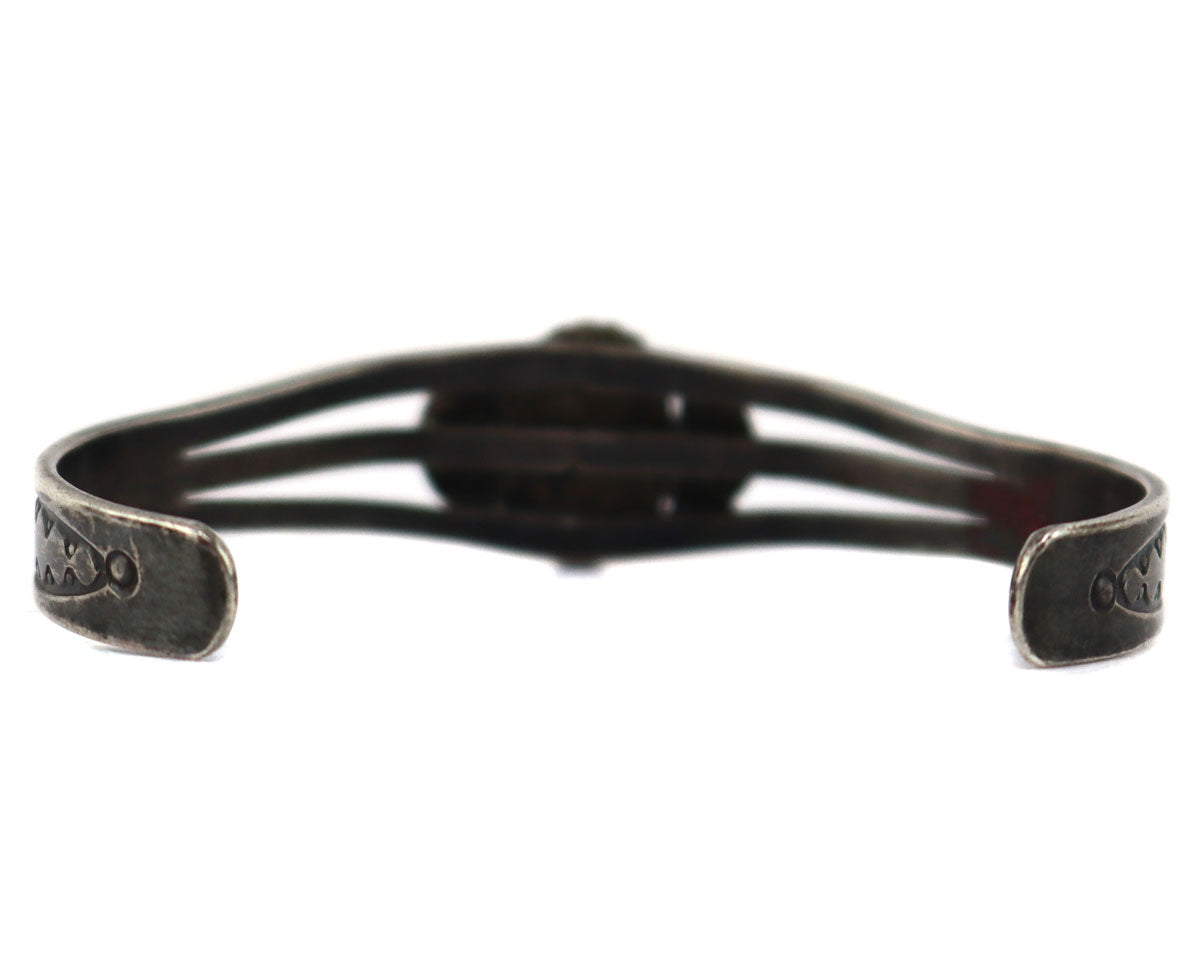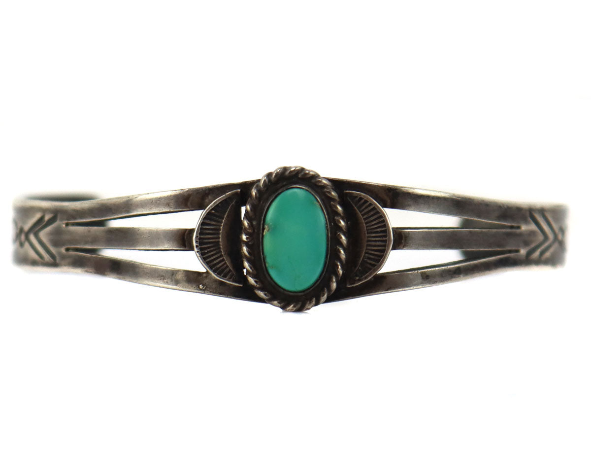 Navajo - Turquoise and Silver Bracelet with Stamped Design c. 1960s, size 5.875