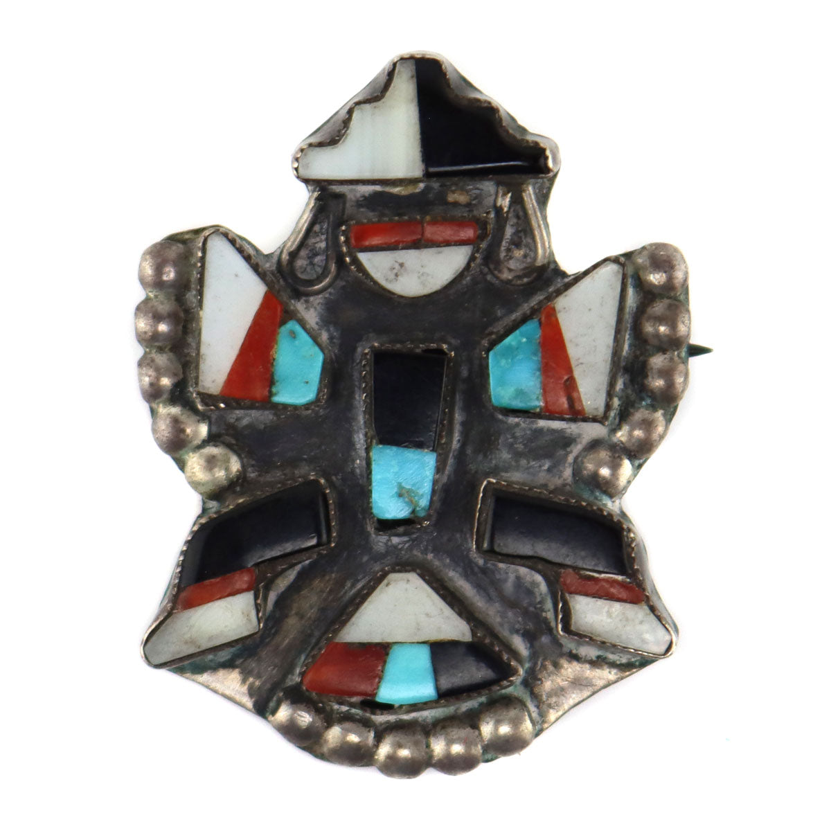 Zuni - Multi-Stone Inlay and Silver Knifewing God Pin c. 1940-50s, 1.5" x 1"