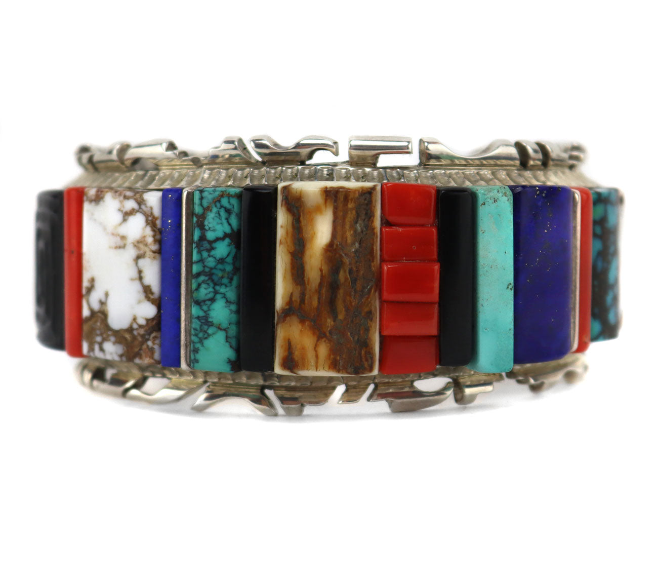 Alvin Yellowhorse (b. 1968) - Navajo - Contemporary Multi-Stone Cobble Inlay and Sterling Silver Bracelet, size 6.5