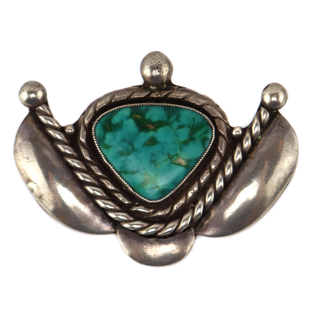 Navajo - Blue Gem Turquoise and Silver Pin c. 1940s, 1.625" x 2.125"
