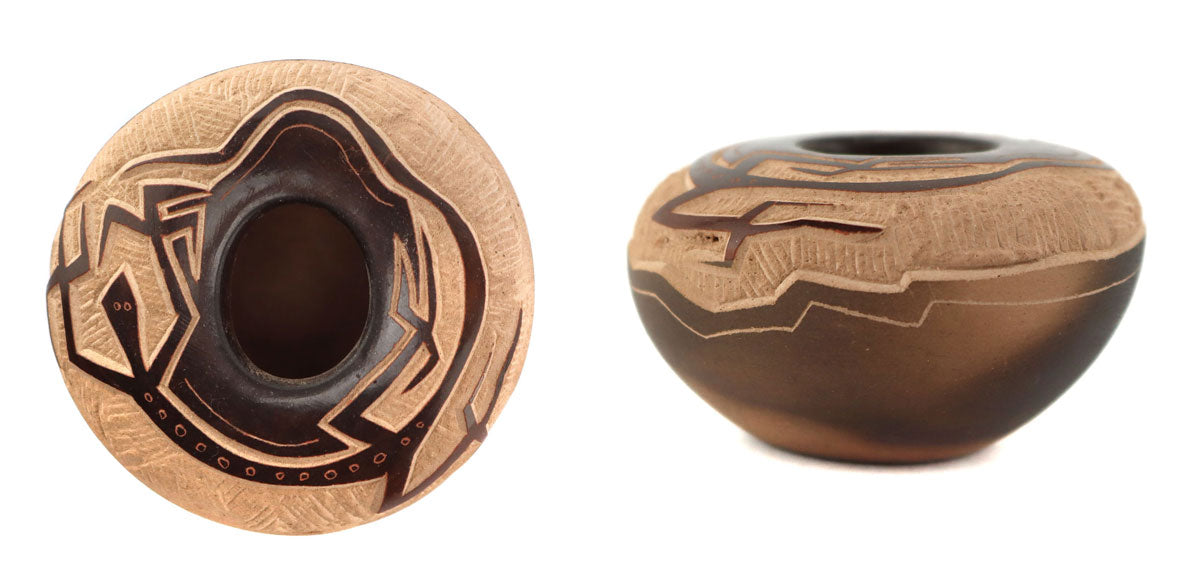 Jody Naranjo (b. 1969) - Santa Clara Miniature Sgraffito Jar with Lizard Design c. 1994, 1" x 2"