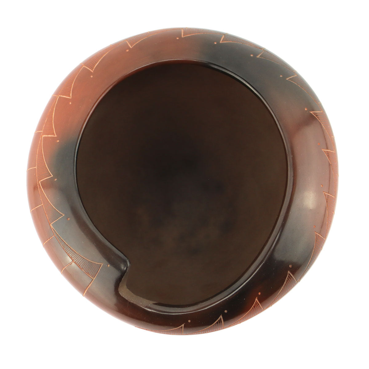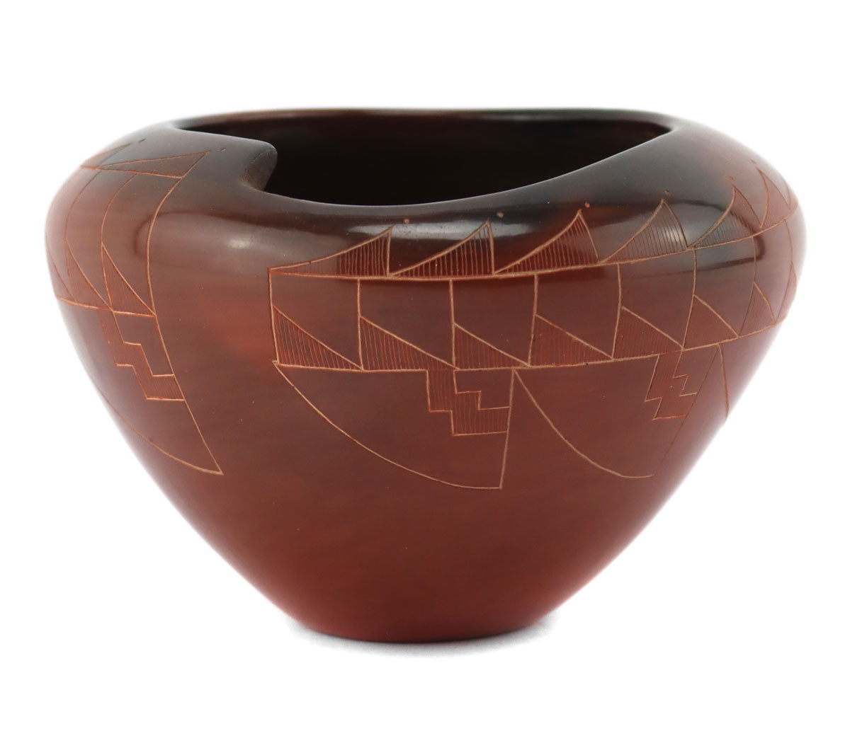 Polly Rose Folwell (b. 1962) - Santa Clara Asymmetrical Redware Sgraffito Jar with Fire Clouds c. 1990-2000s, 3.25" x 5"