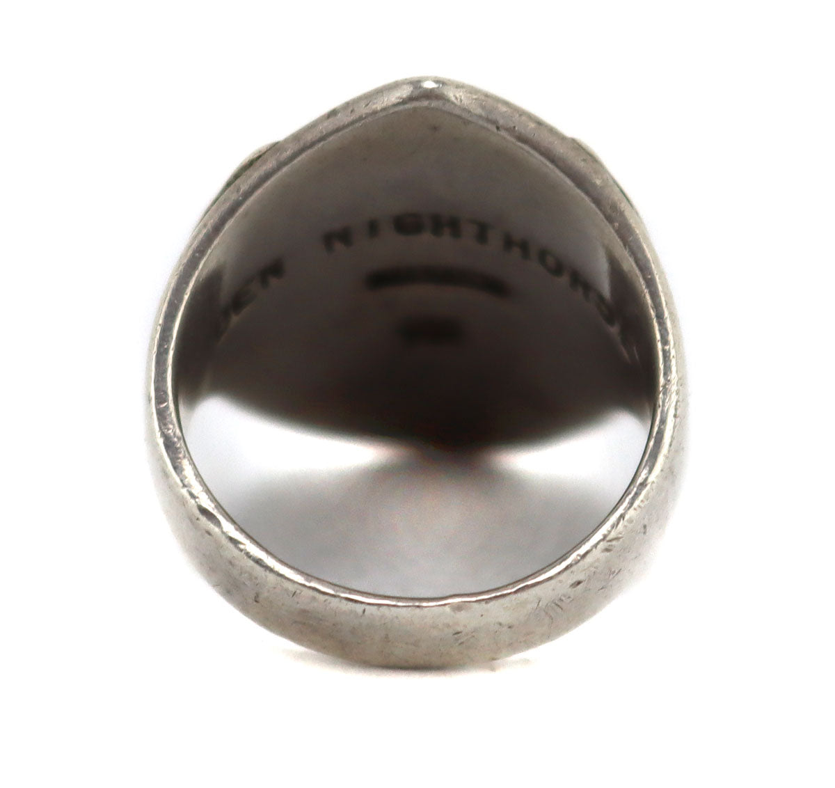 Ben Nighthorse (b. 1933) - Cheyenne - Turquoise and Sterling Silver Overlay Ring with Feather Pictorials c. 1980-90s, size 5.75