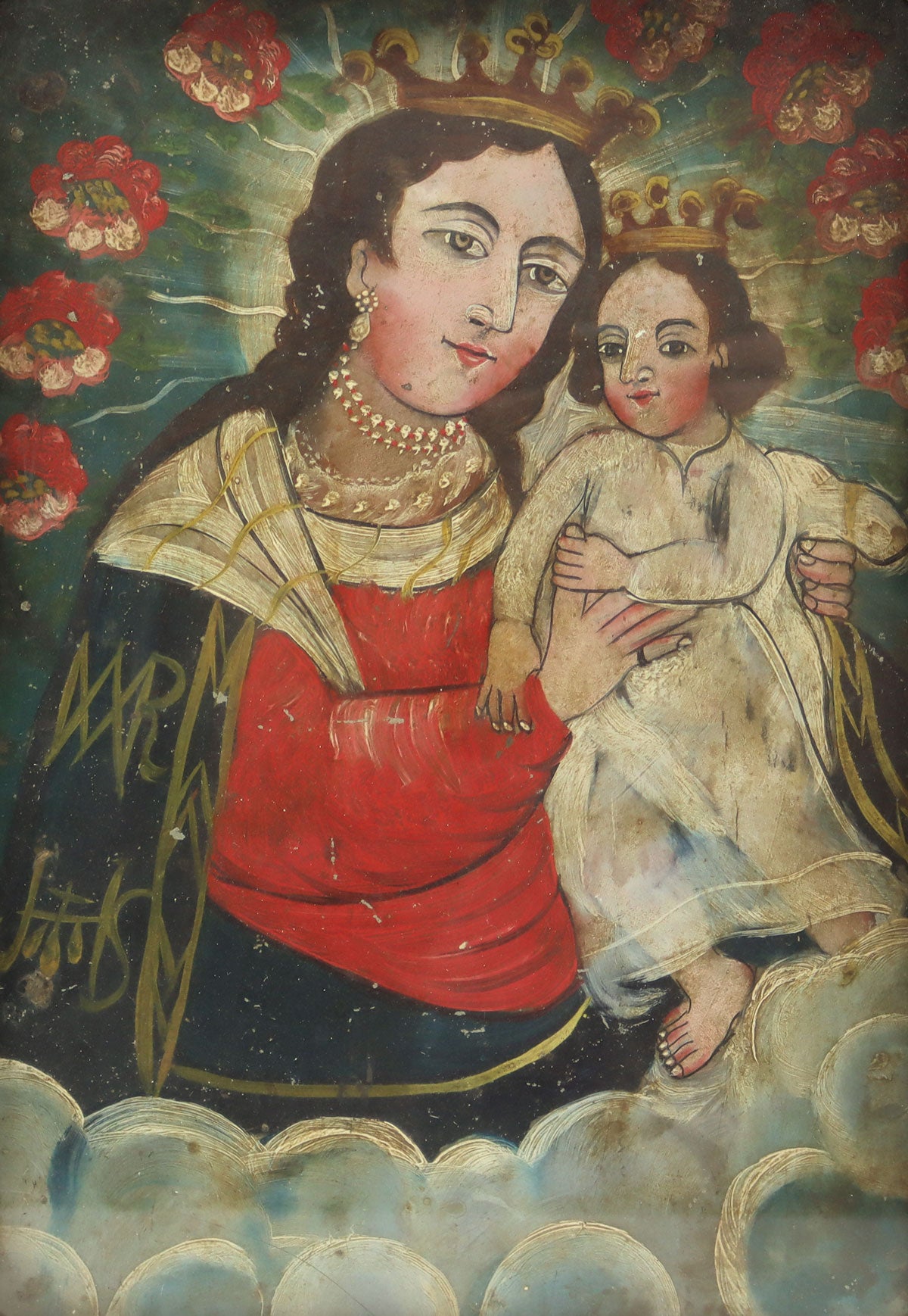 Rafael Laspron - "Refugium Peccatorum" Spanish Colonial Retablo, 13.25" x 9.75"