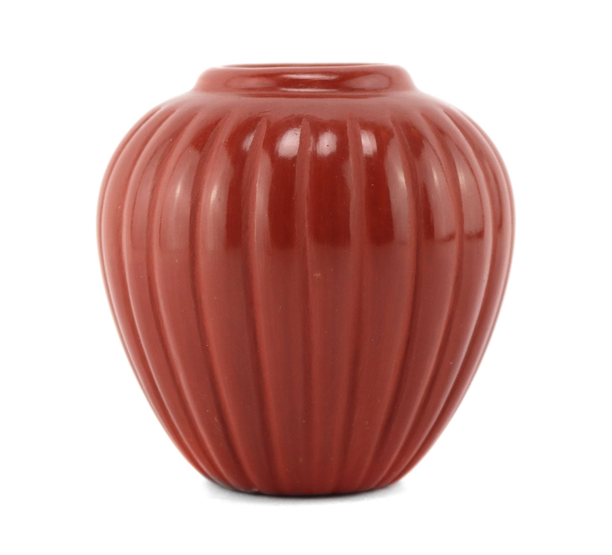 Alvin Baca (b. 1966) - Santa Clara Redware Melon Jar c. 1990s, 3.375" x 3.375"