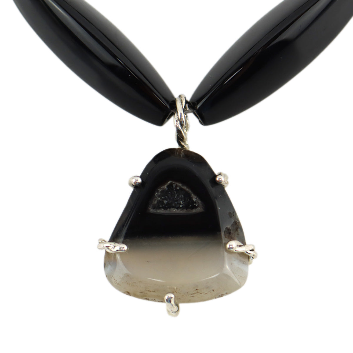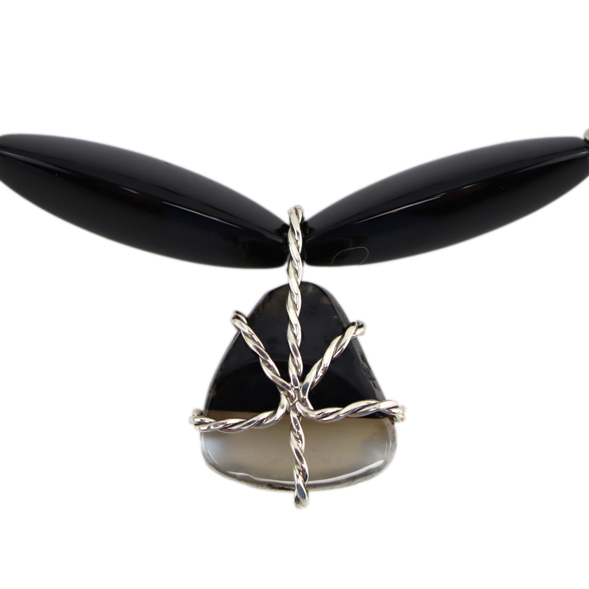 Miramontes - Agate Stone and Sterling Silver Pendant with Long Faceted Onyx Beads, 24" length