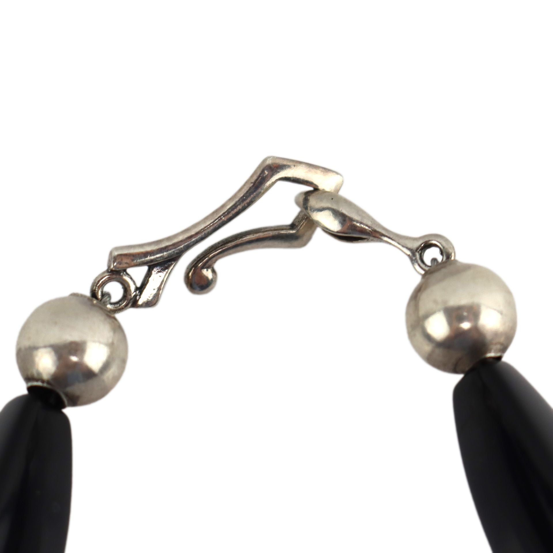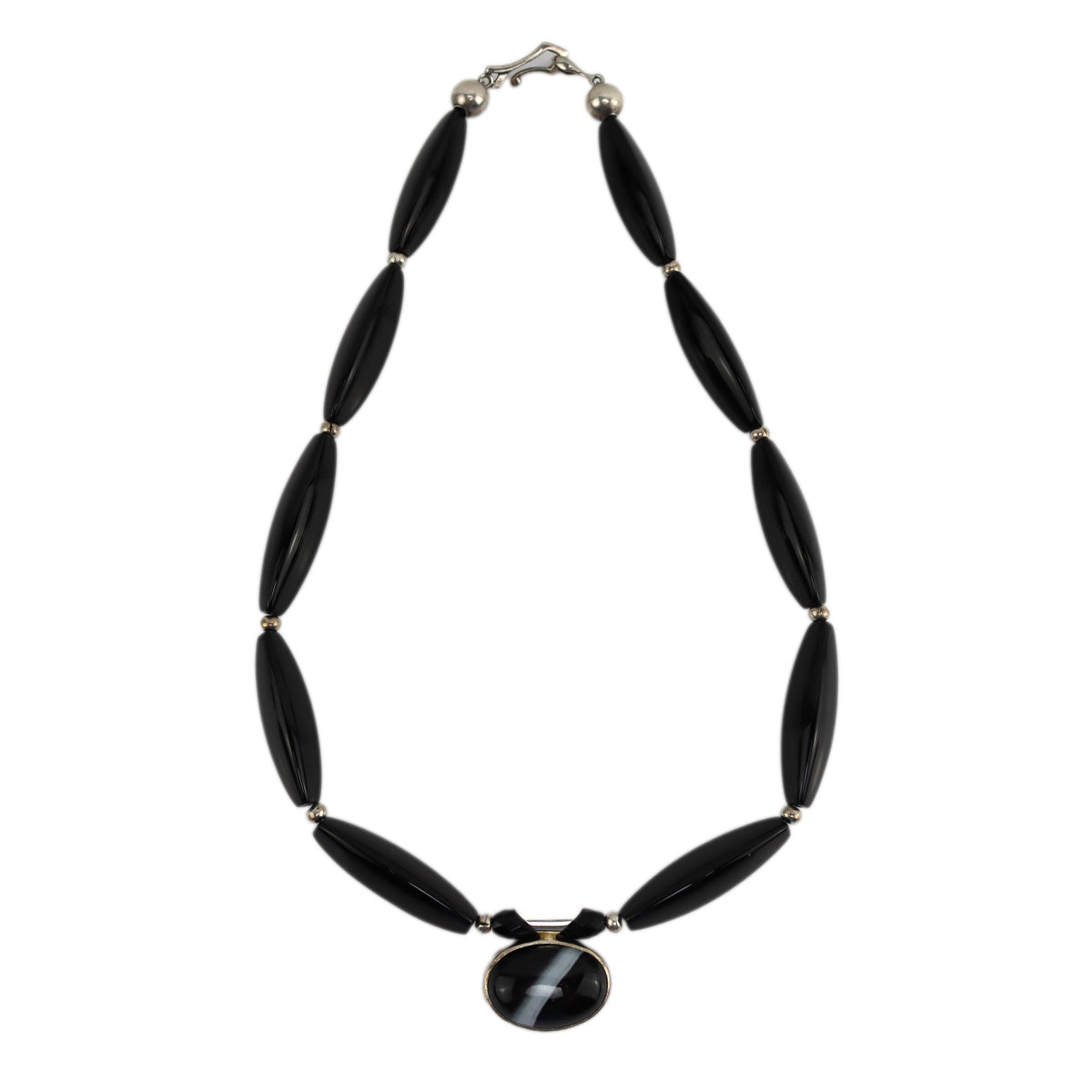 Miramontes - Striped Agate and Silver Pendant with Long Faceted Onyx Beads, 20" length