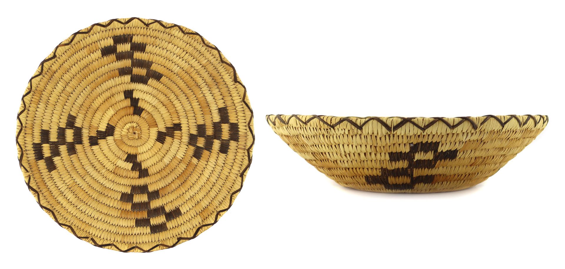 Tohono O'odham Basket with Geometric Design c. 1960s, 3.375" x 13"