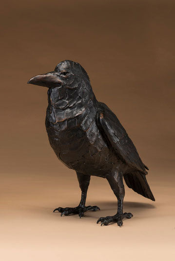 These Ravens often visit the huge cottonwood outside my studio and begin an amazing array of vocalizations….chattering away until I come out to interact with them. They sometimes will perch on the telephone poles at the entrance to our ranch, and when I go out to ride will chatter as if they wish me to acknowledge their presence. Sometimes they will fly along with us on the ride…..behavior which I find charming and beguiling indeed!" - Star Liana York