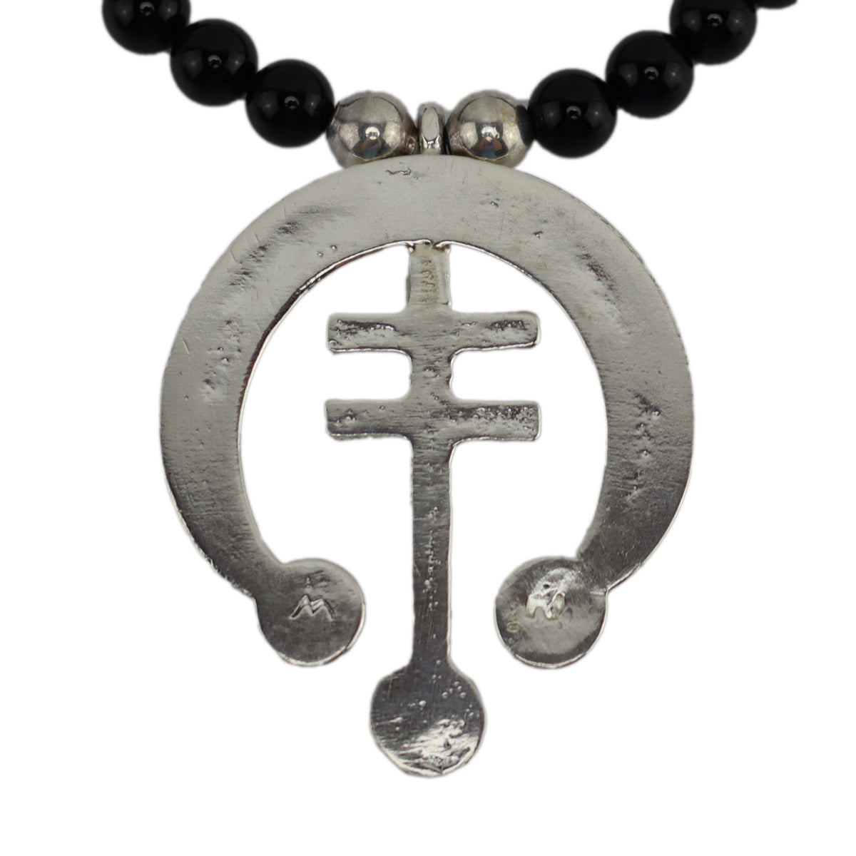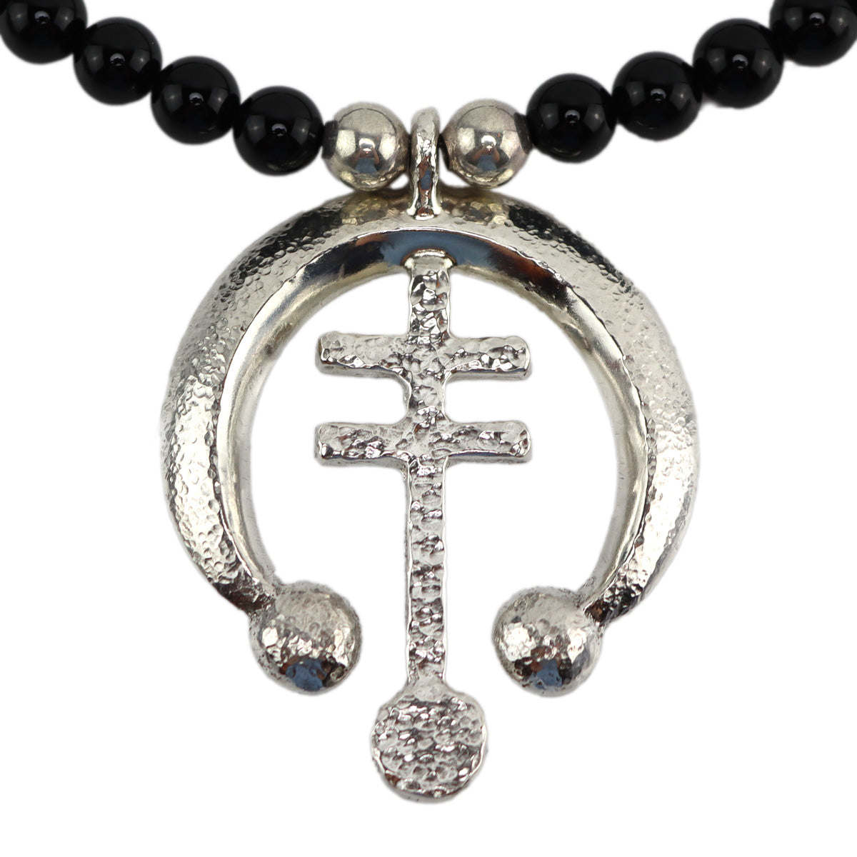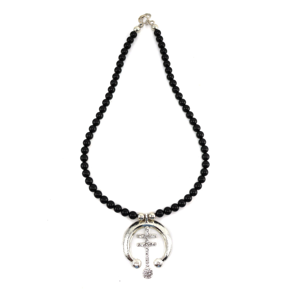 Miramontes - Silver New Mexico Cross with Naja and Onyx Beads, 26" length