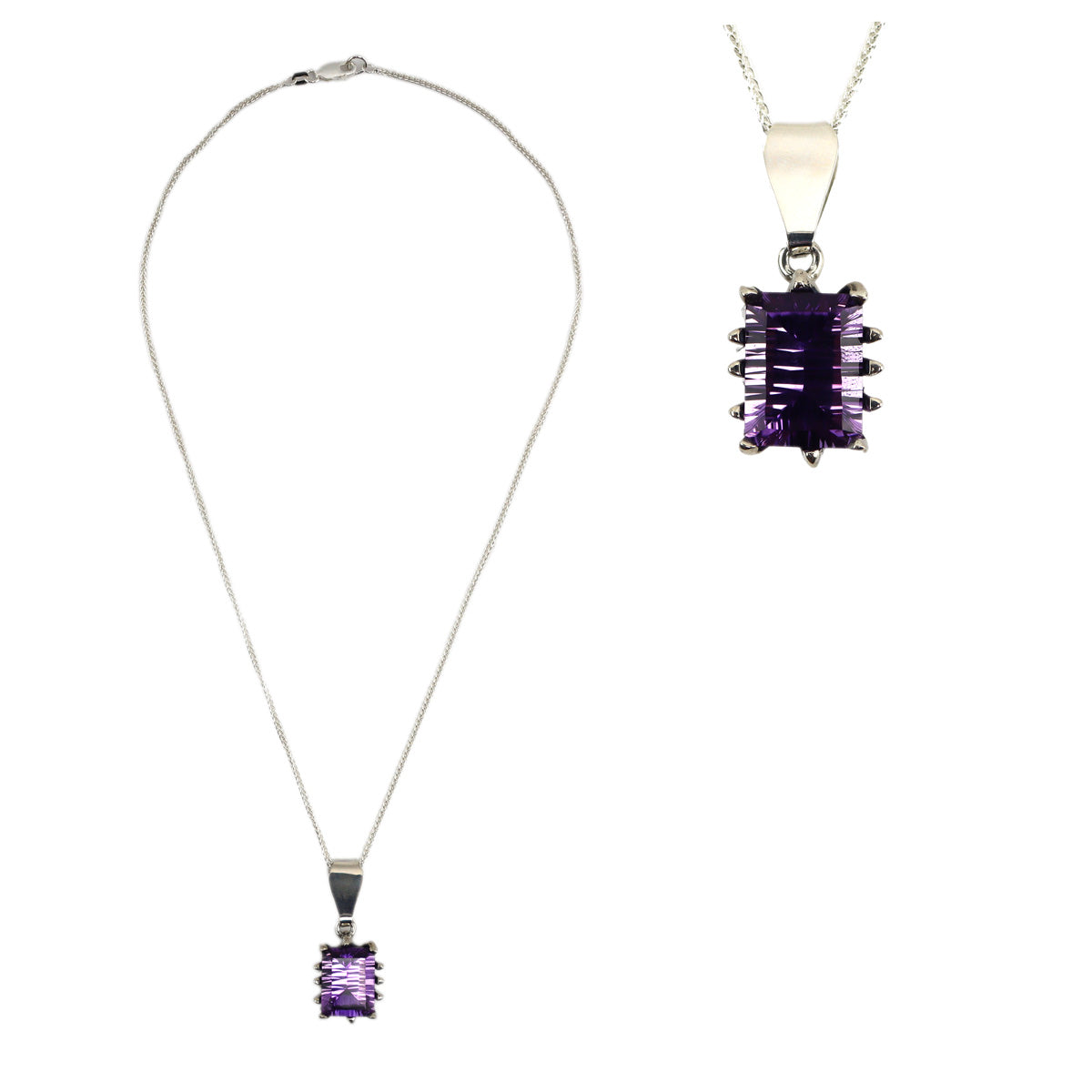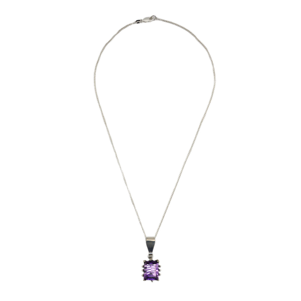 Sam Patania - "Grand Cathedral Pendant" Amethyst and Sterling Silver Necklace, 1.5" x 0.5" pendant
