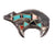 Tim Yazzie - San Felipe - Turquoise, Sterling Silver Overlay, and Leather Bolo Tie with Heartline Bear Design c. 2000s, 3" x 2" bolo