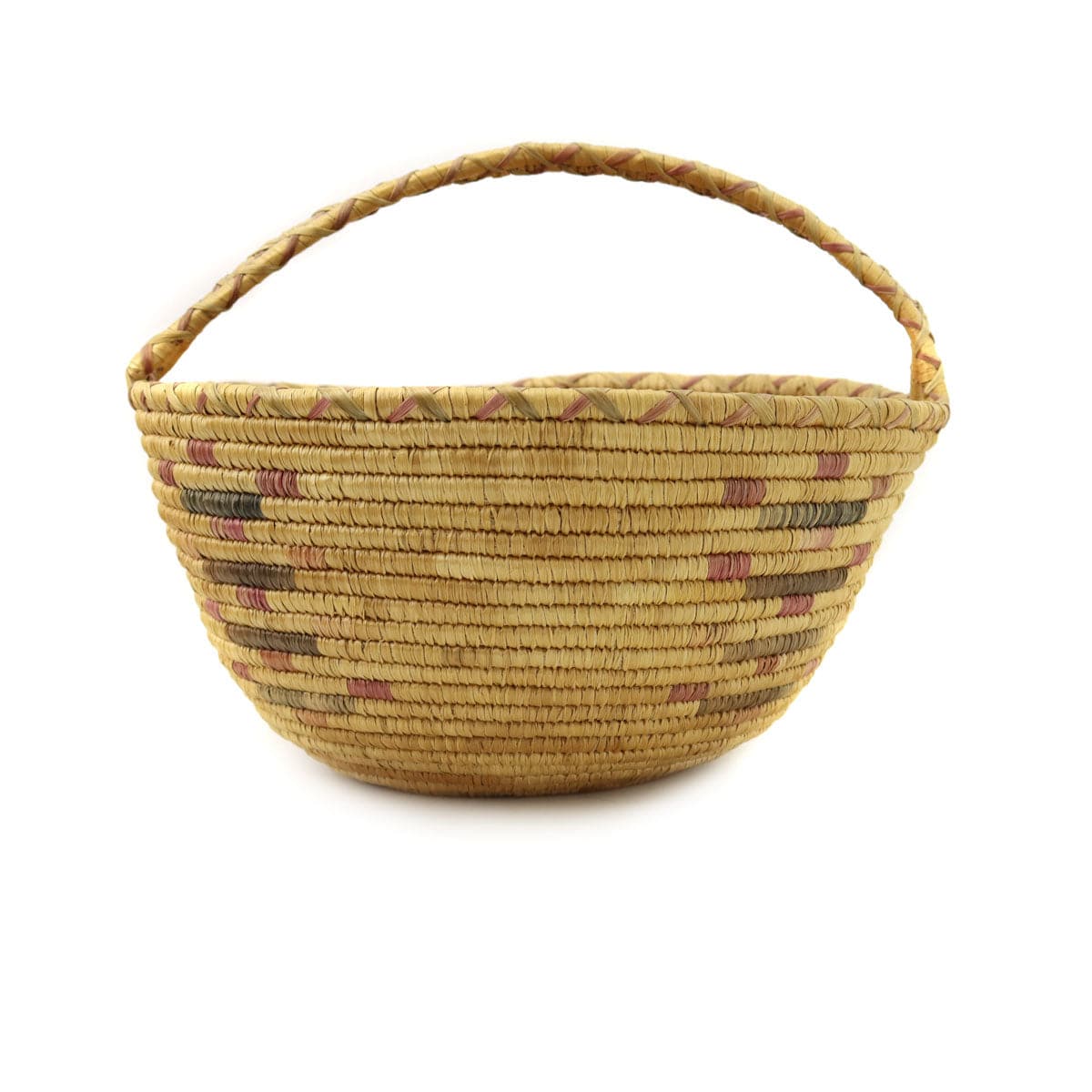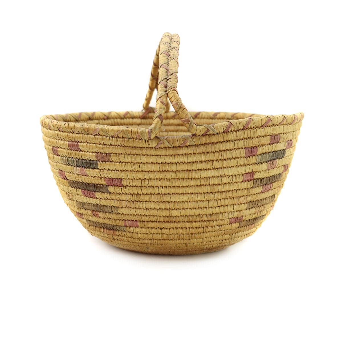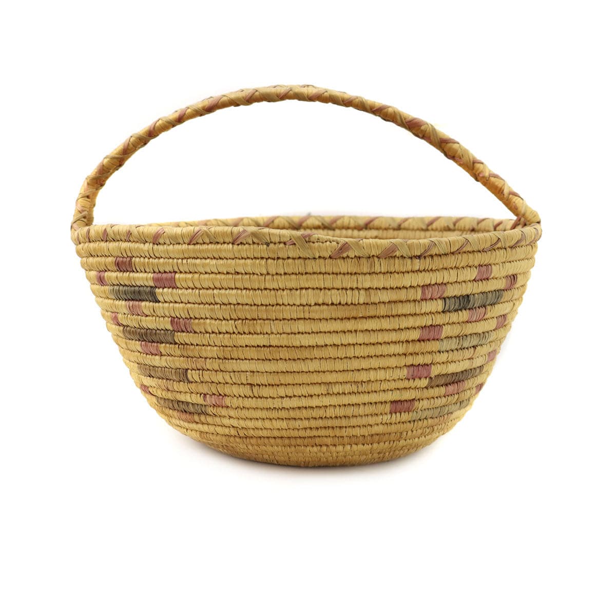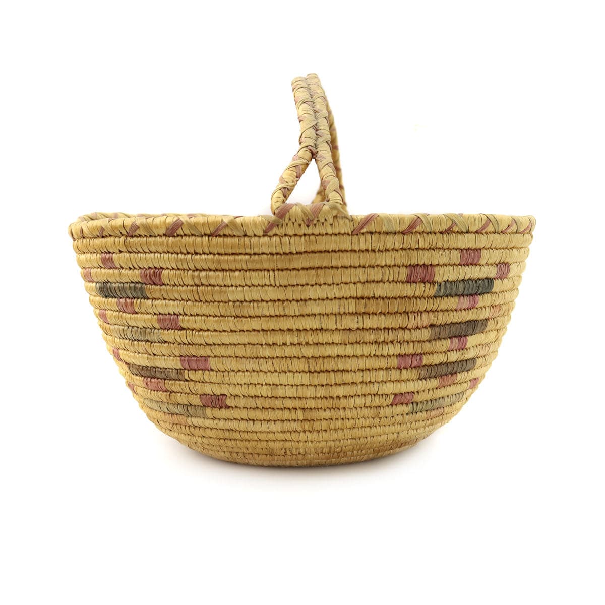 Alaskan Polychrome Oval Basket with Handle c. 1940s, 7.5" x 8.5" (SK3273)