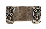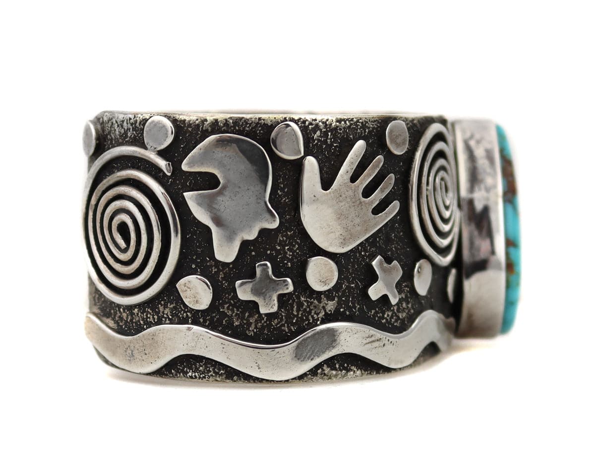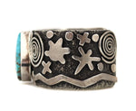 Size 6.75, to include gap of 1.25". Bandwidth is 1.25". Ex Rex Arrowsmith Estate: a long-time Native American trader and art dealer, who owned a shop in Santa Fe, New Mexico "Relics of the Old West," which opened off the Old Santa Fe Trail in 1950. He also participated as a judge at the Santa Fe Indian Market for many years. He also served as president of SWAIA, Southwestern Association for Indian Arts. The owner has authorized us to lower the price from $1,270 to $935. This is a wonderful collecting opportunity.
