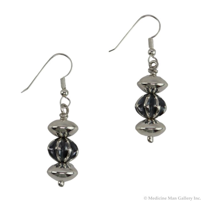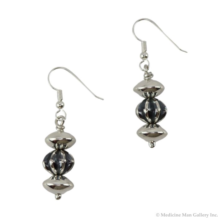 Alfred Joe - Navajo - Contemporary Sterling Silver French Hook Earrings, 1" x 0.5" (J15784-011)