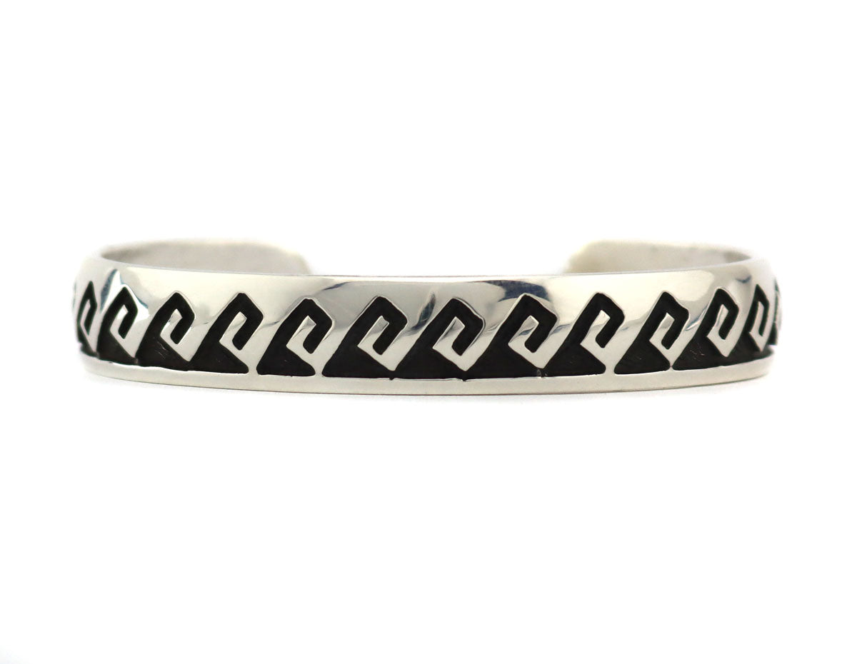 Anderson Koinva - Hopi - Contemporary Sterling Silver Overlay Bracelet with Pictorial Design, size 6.25