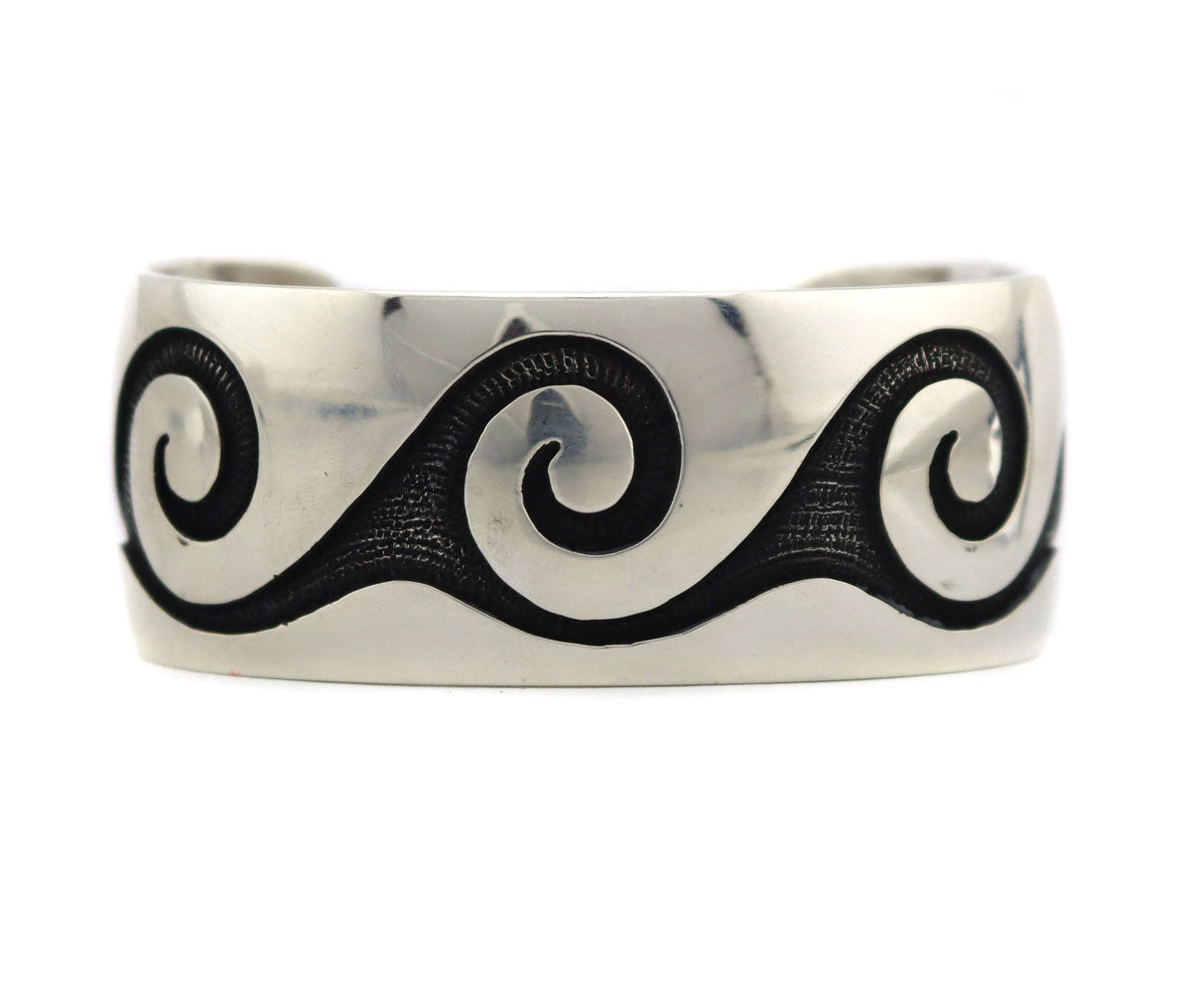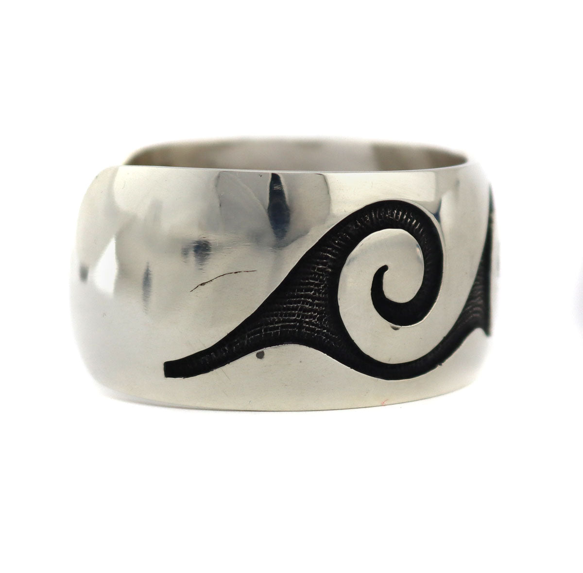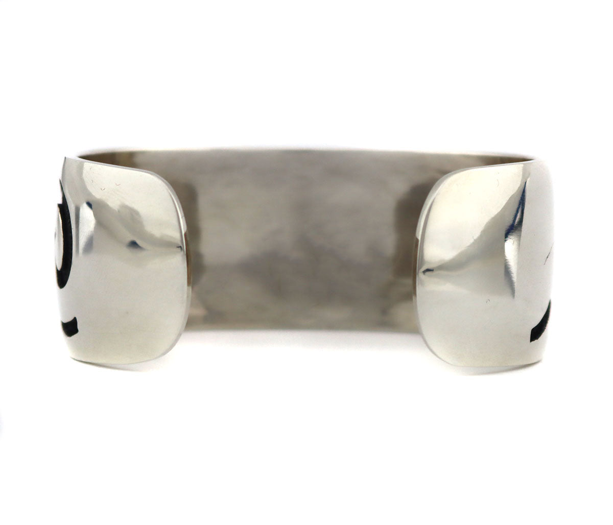 Anderson Koinva - Hopi - Contemporary Sterling Silver Overlay Bracelet with Pictorial Design, size 6.5