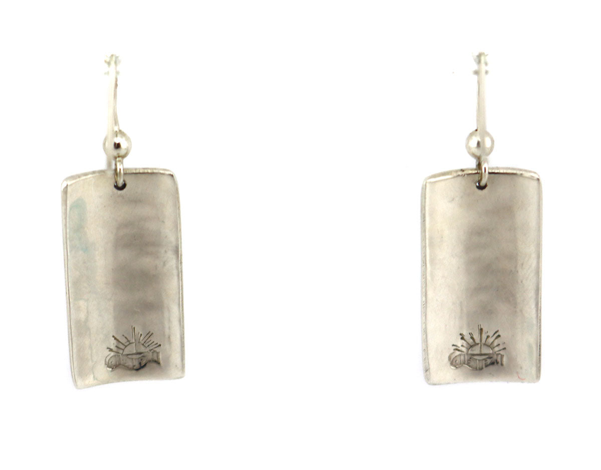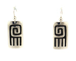 Anderson Koinva - Hopi - Contemporary Sterling Silver Overlay French Hook Earrings with Pictorial Designs, 1.375" x 0.5"