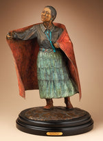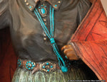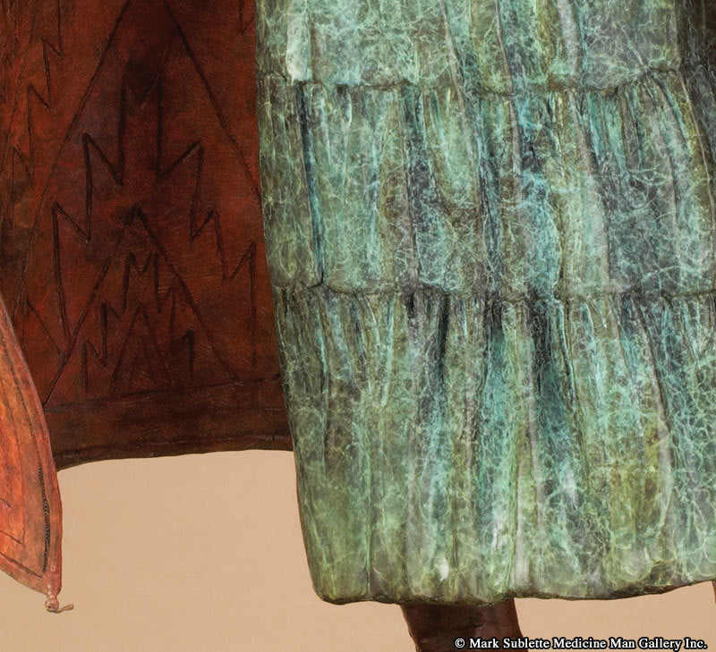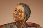 28″"Nizhoni has become a woman of seasoned maturity and presents her finished creation with great satisfaction. A grand-mother now, her many decades of weaving and living bring together her practiced skill with a depth of understanding that can only come over time. She holds the finished blanket proudly. It represents many years of honing her skill as a weaver and as an artist. The weaving is her artistic medium thru which she interprets her culture and world. She has accomplished a point in her life when all elements that make up who she is and what she knows of life come together in this woven creation. It will not go to market, but will remain in her family as a testament to her life... an heirloom for her following generations." - Star Liana York