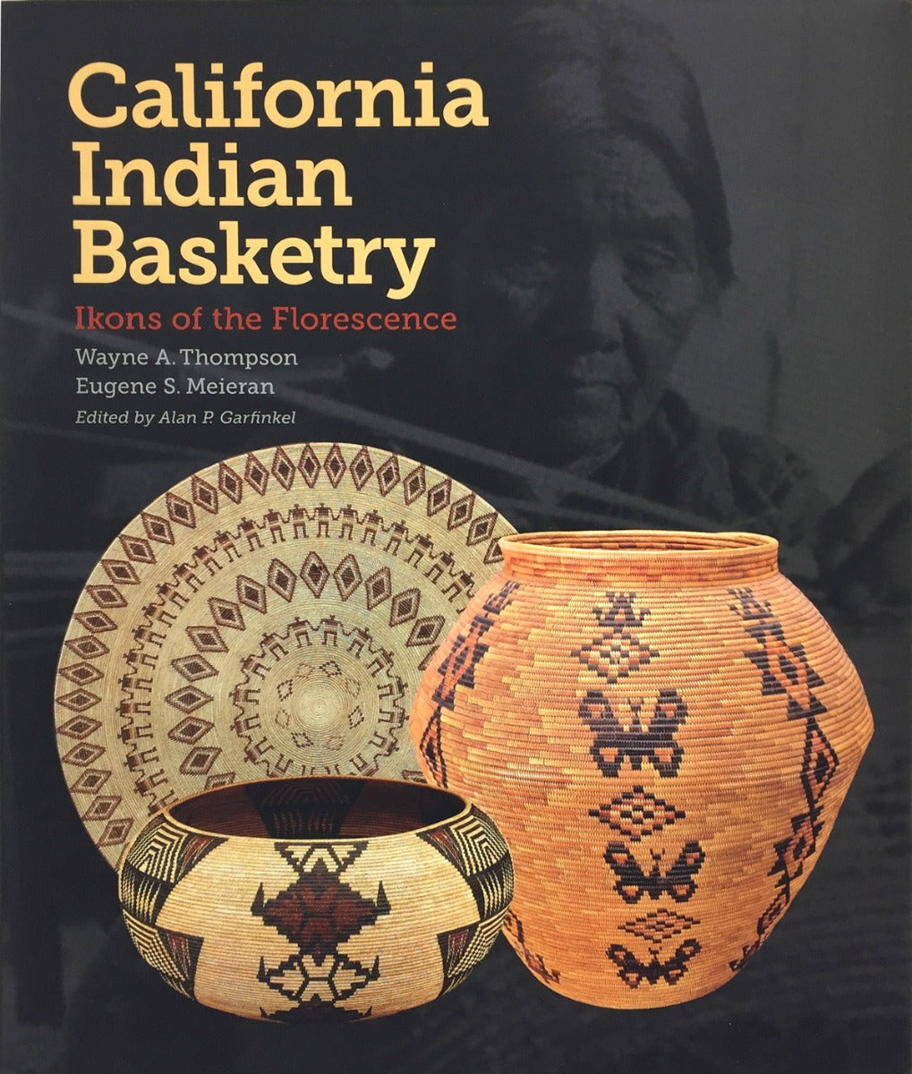 Signed by the author, Eugene Meieran. The new gold standard for California basketry. 344 pages. ISBN: 978-1941384527. 5.2 pounds. Sunbelt Publications 2021. "This richly illustrated photographic overview captures the beauty and artistry of the remarkable world-class, Native American Indian baskets of California, circa 1895 to 1940, known as the Florescence or Flowering. It is a tribute to these artisans and includes biographical snapshots of weavers and portraits of their masterpiece California Indian baskets, which today exist in museums and private collections throughout the United States. Collecting highly complex and artistic Native American baskets became a successful tourist business in the late 19th and early 20th centuries -- tourism in the United States exploded as a result of the expansion of the railway system to hitherto relatively inaccessible locations. This new business benefitted both collectors of this art form and the weavers who created them. The transition from woven baskets used for utilitarian use to more durable and less expensive metal cookware and storage vessels allowed weavers the time needed to innovate and create baskets specifically catering to tourist interests. During this period of Florescence, some of the world's most intricate, beautiful, and artistic baskets were woven, particularly by highly-talented weavers representing several Native American tribes located throughout California."