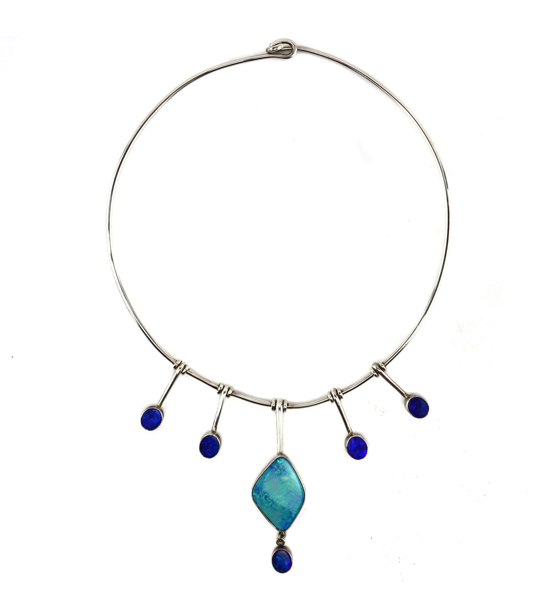 Carlos Diaz - Opal and Sterling Silver Necklace c. 1970s, 3" x 1" pendant