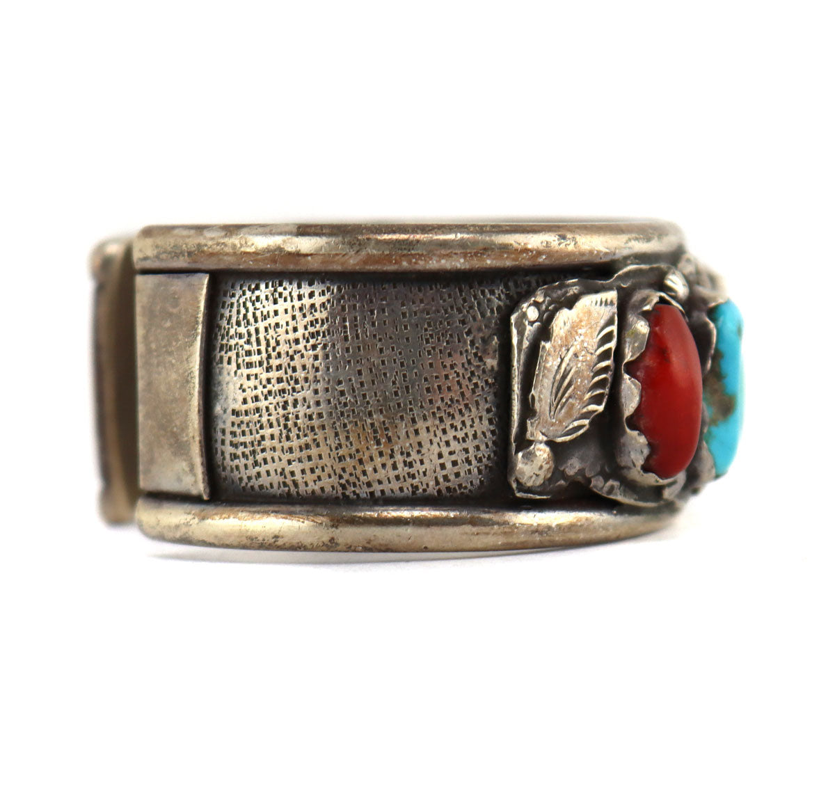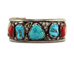 Carmelo Patania (1902-1999) - Turquoise, Coral and Sterling Silver Bracelet c. 1950-60s, size 6.5