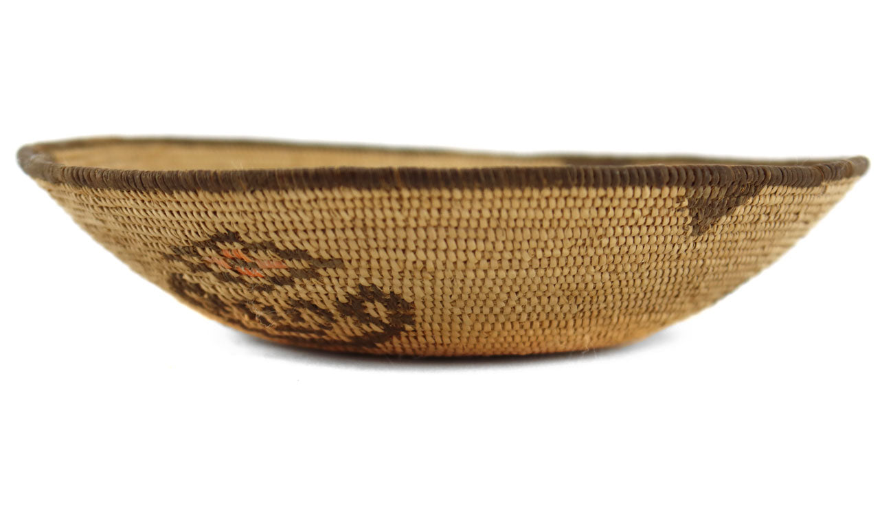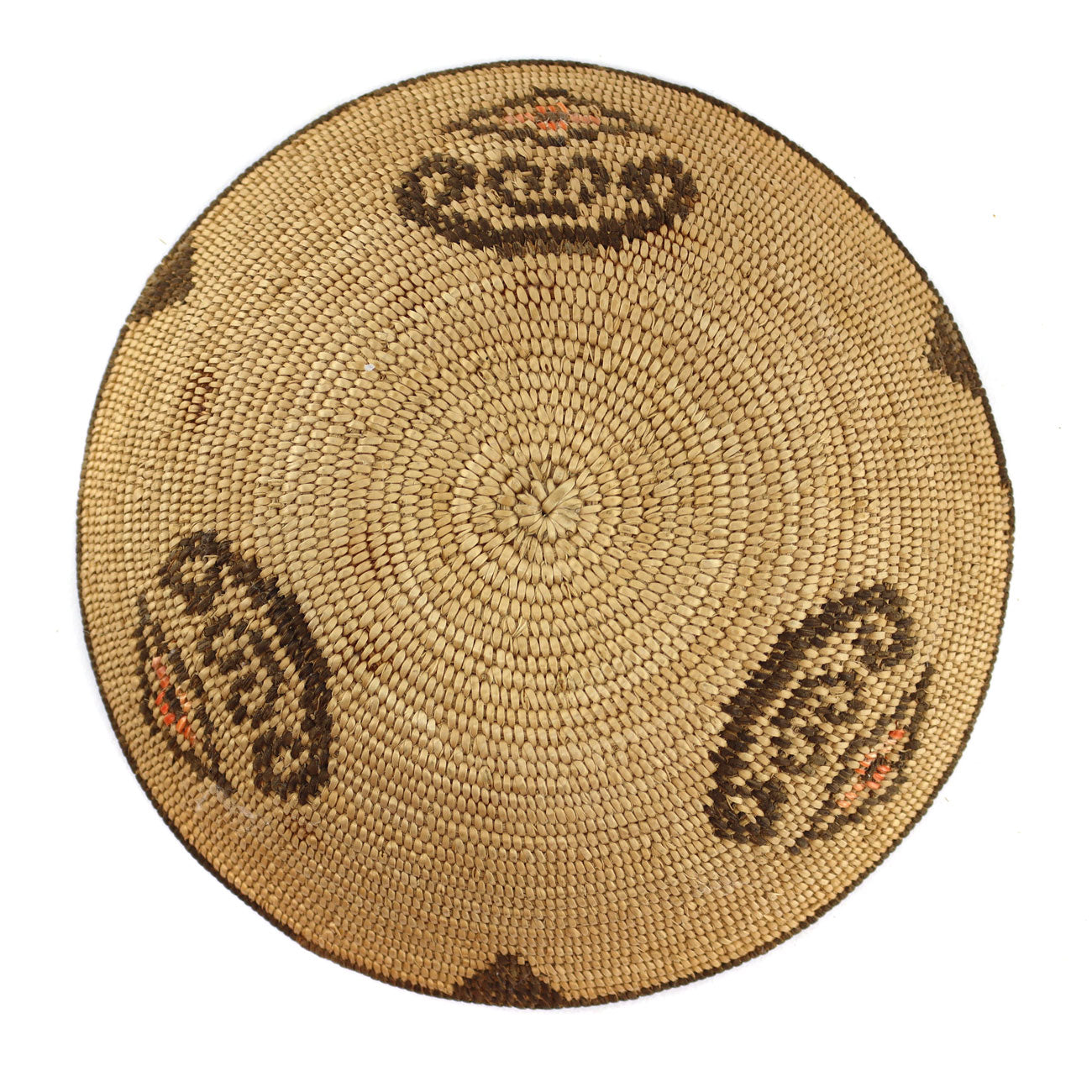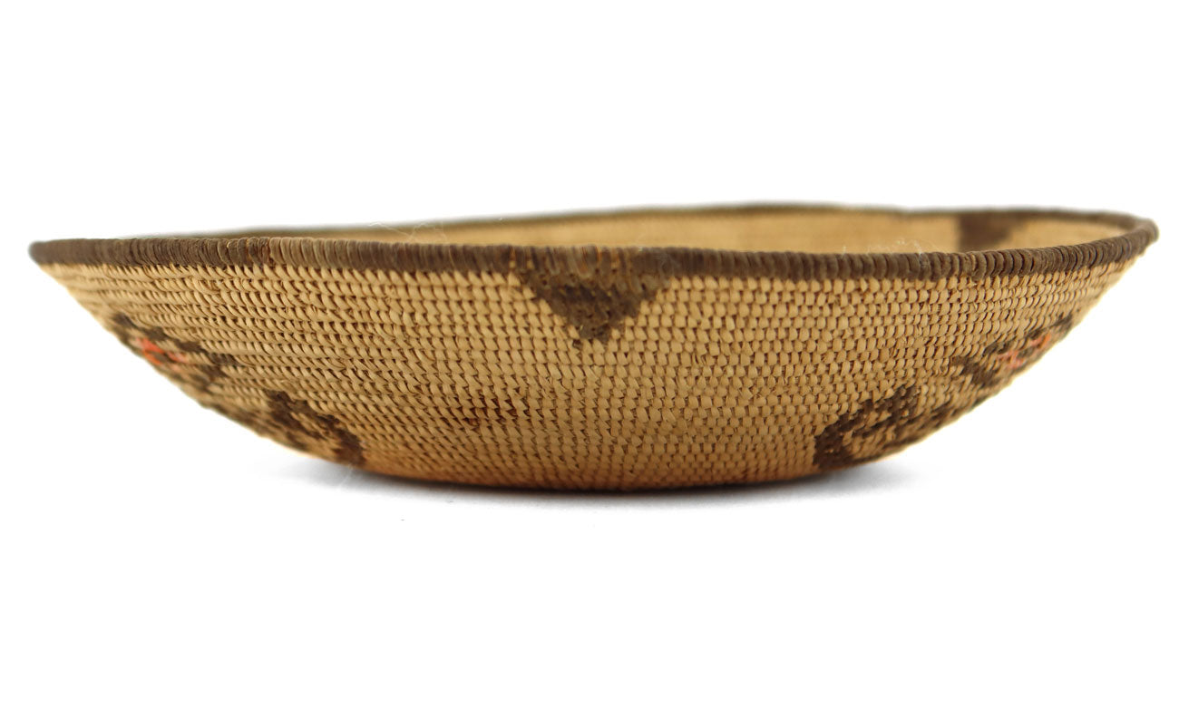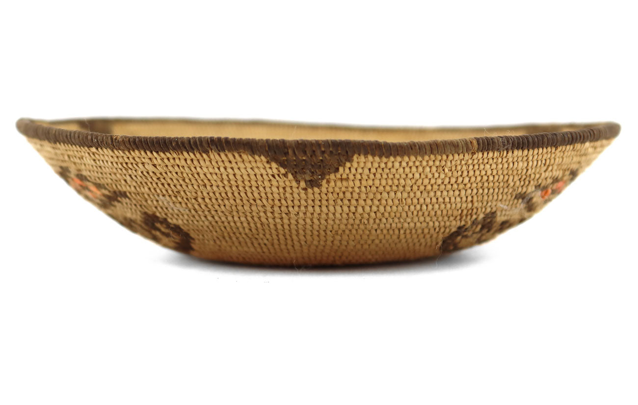 Chemehuevi Polychrome Basket with Flicker Feather Quills c. 1920s, 1.5" x 6.5"