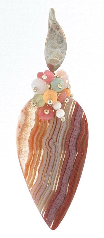 Dana Busch - Pair of Cluster Drop Earrings with Laguna Agate, Rhodocrosite, Pale Pink Opal, White Opal, Aqua Blue Larimar, Creamsickle Orange Corneolo Shell, White Coral and Brushed Sterling Silver (J90283A-0115-004)
