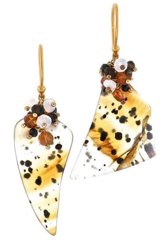 Dana Busch - Pair of Cluster Drop Earrings with Montana Agate, Spessartite, Black Spinel, Milky White Opal, Smoky Quartz and 24Kt Gold Vermeil (J90283A-0115-012)