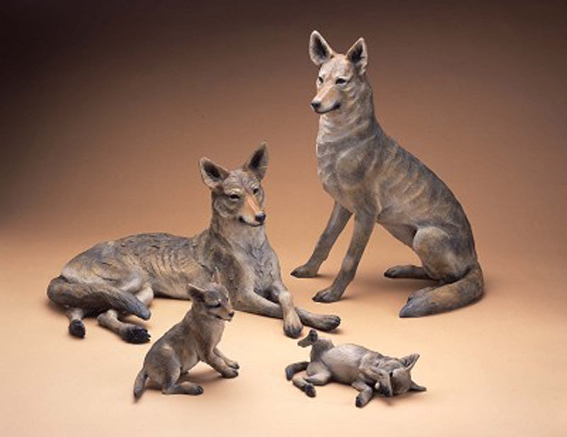 BronzeCoyote (II) Male: 18" x 30" x 17", Coyote (III) Female: 28" x 21" x 17", Coyote Pup Roll: 11" x 7" x 7", Coyote Pup Playful: 10" x 12" x 8"