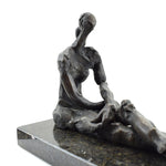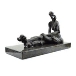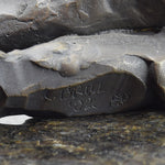 This bronze sculpture measures 7.5" x 10.5" x 3.5" and is on a 1.5" x 13" x 6" granite base.
