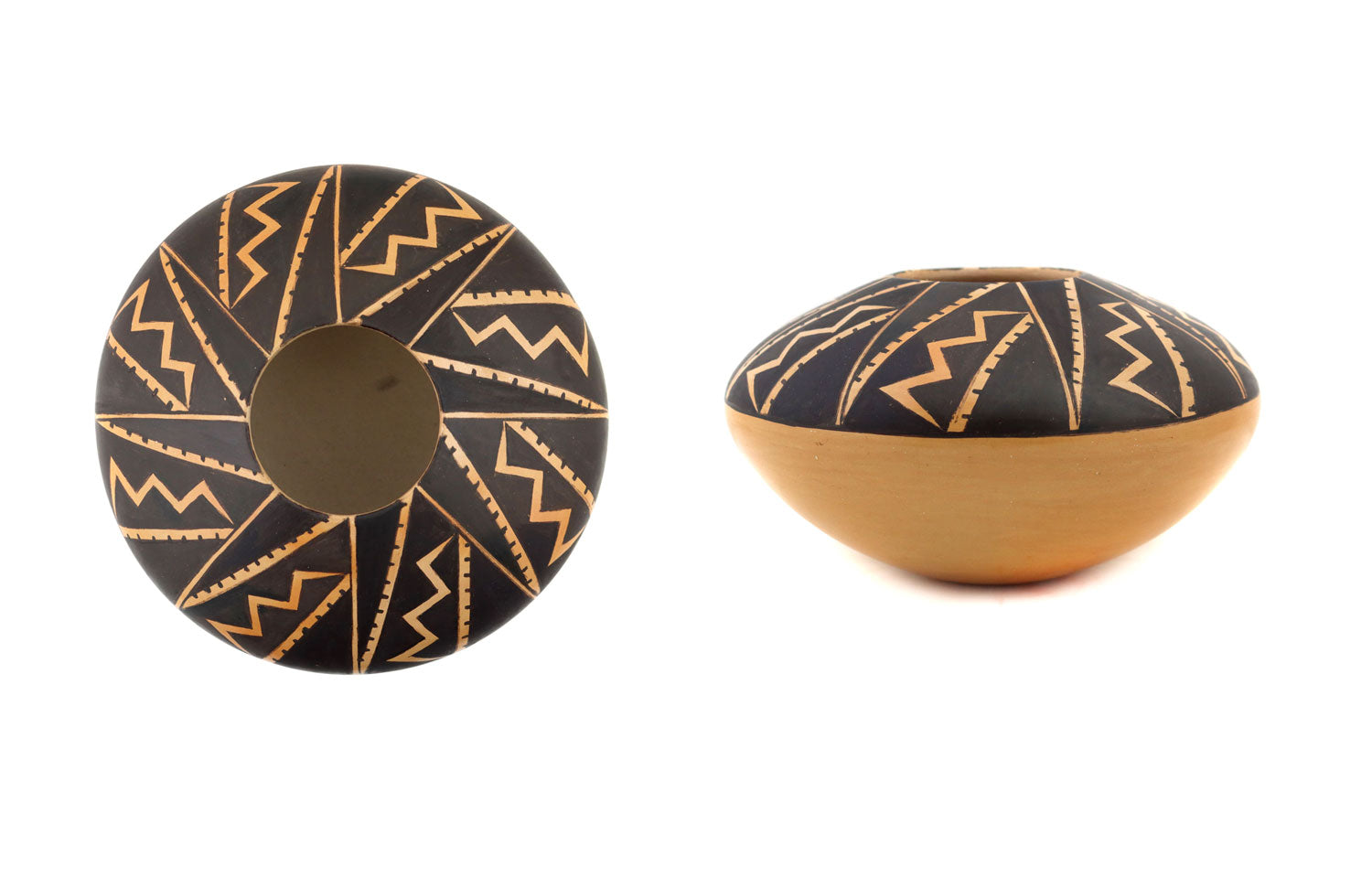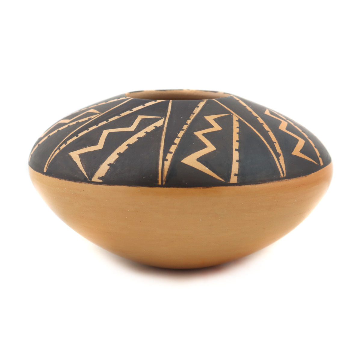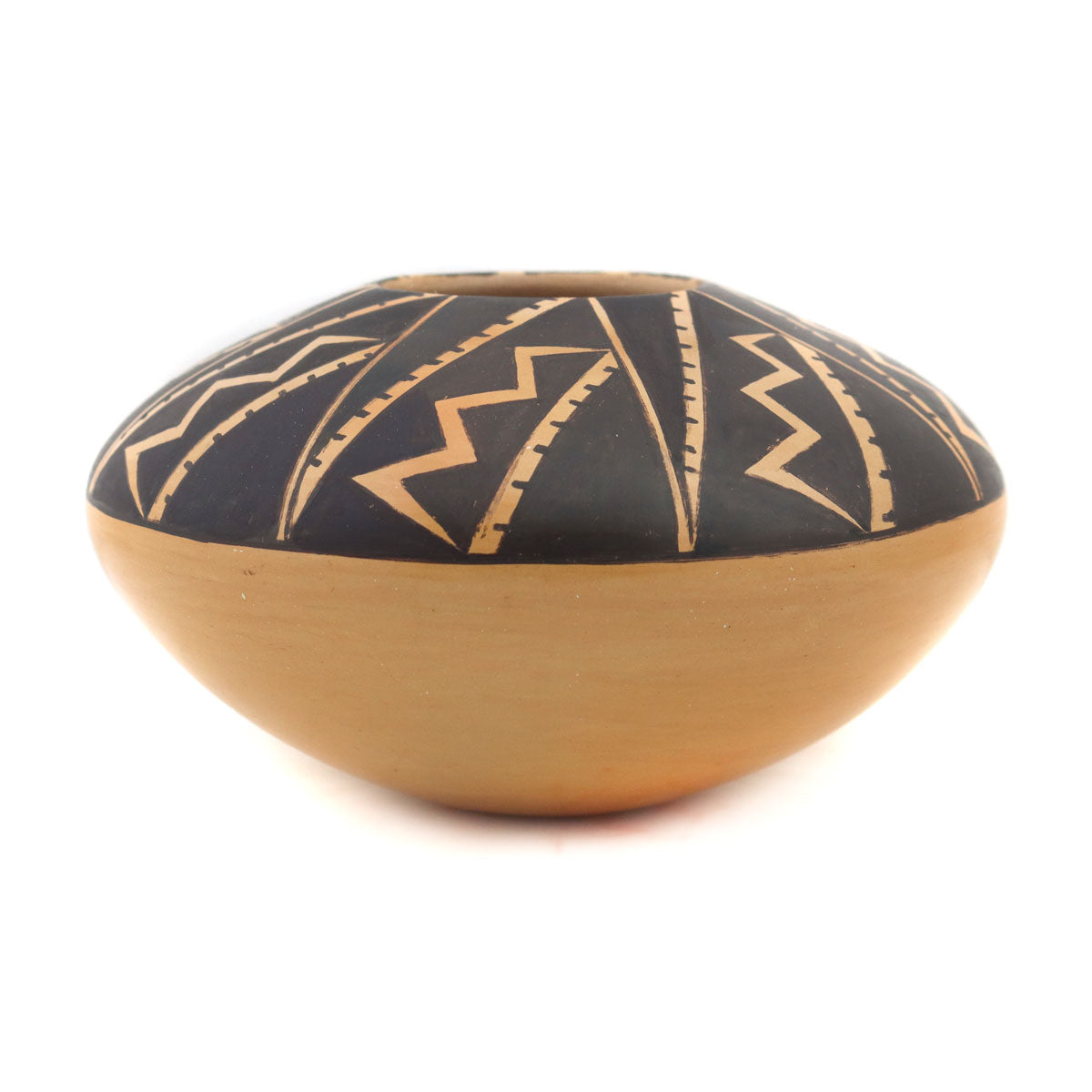 Dextra Quotskuyva Nampeyo (1928-2019) - Hopi Contemporary Jar with Spiral Zig-Zag Design, 3.25" x 5.625" (P91138A-0222-001)